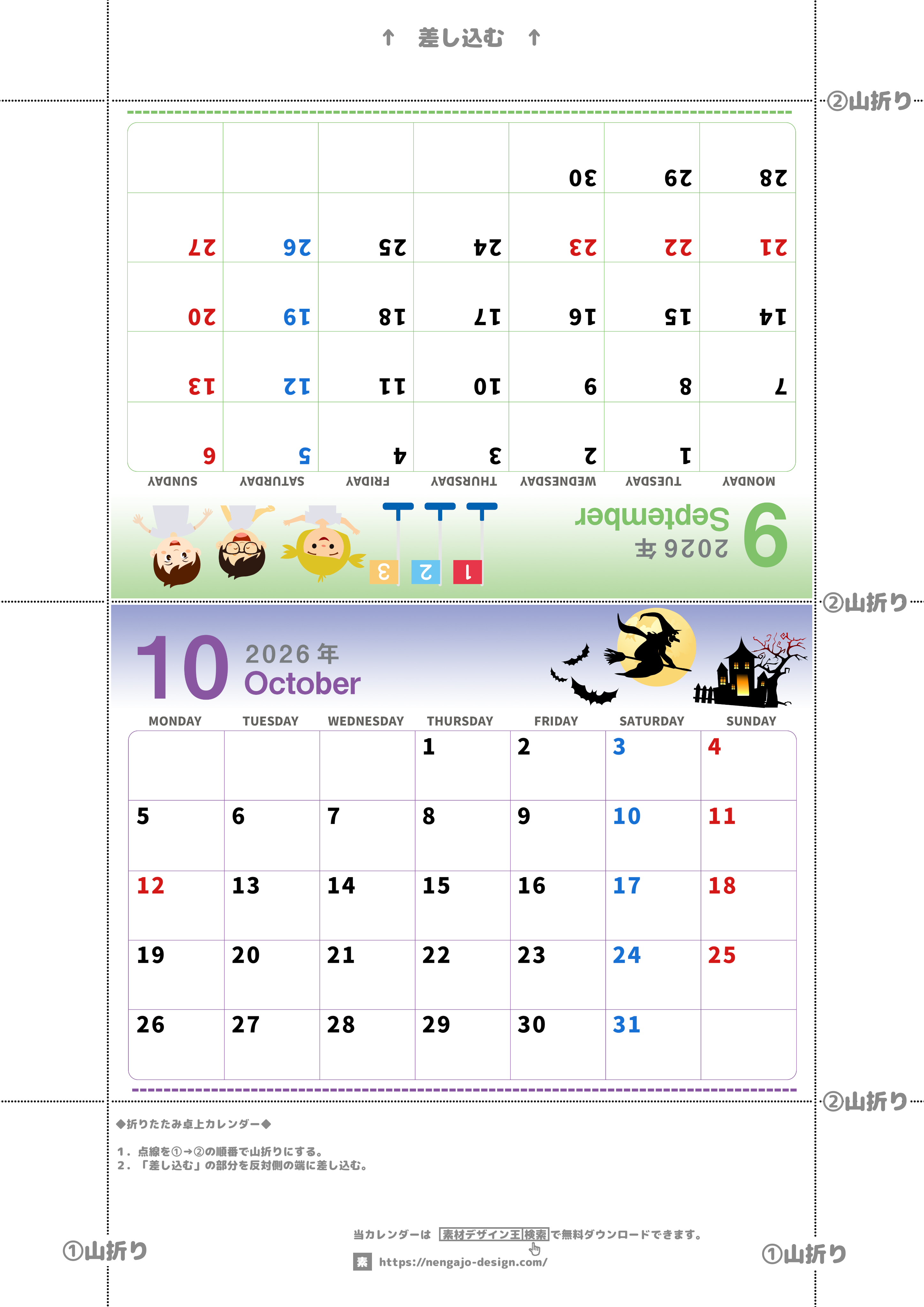 2026年・無料のカレンダーテンプレート 2026年の卓上カレンダー(9月・10月)は月曜始まり♪かわいいオリジナルイラスト素材♪家族にもおすすめ♪A4/無料(2026-000409-1031) 素材状デザイン王 2025年4月14日 2026年の卓上カレンダー(9月・10月)は月曜始まり♪かわいいオリジナルイラスト素材♪家族にもおすすめ♪A4/無料(2026-000409-1031) かわいい カレンダーデザイン-0004 9月 10月 家族 月曜始まり 卓上