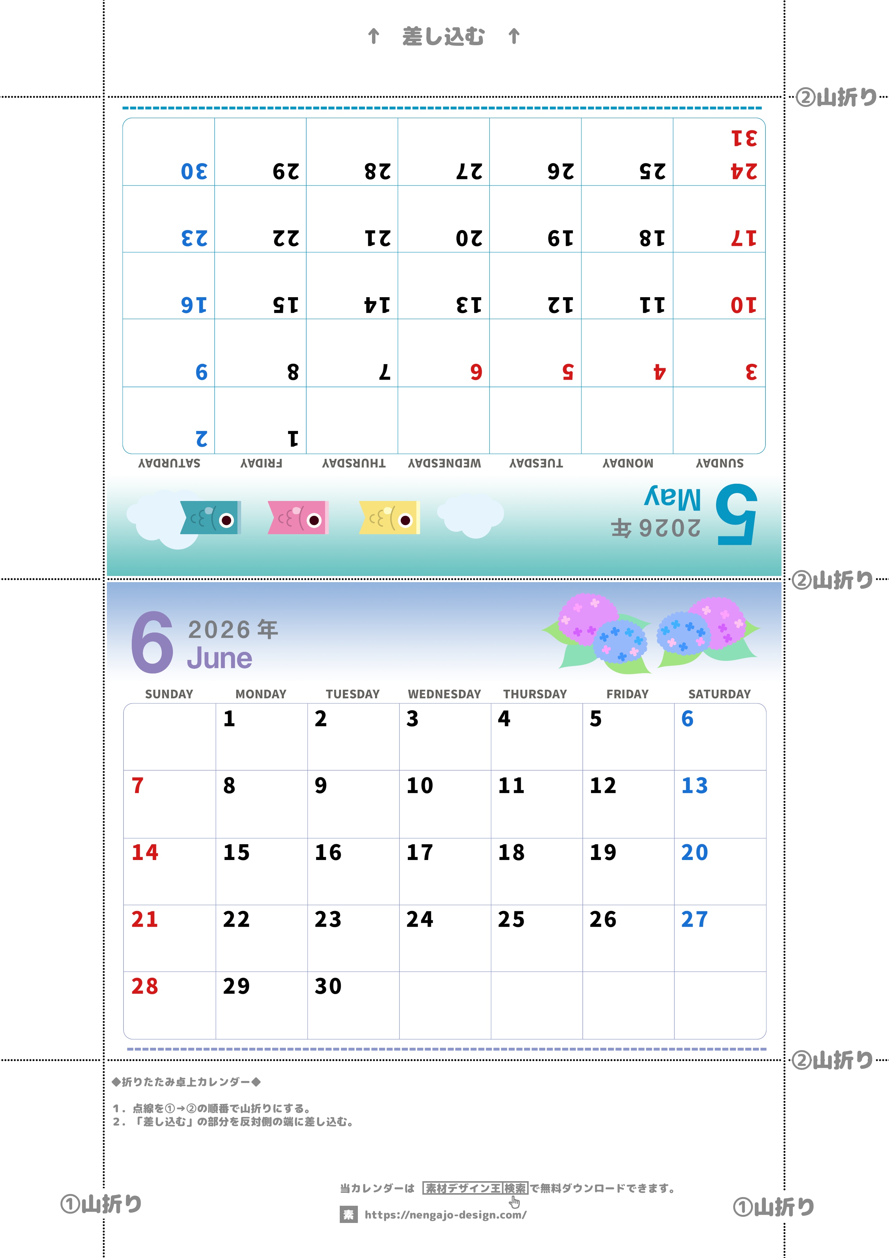2026年・無料のカレンダーテンプレート 2026年の卓上カレンダー(5月・6月)は日曜始まり♪かわいいオリジナルイラスト素材♪家族にもおすすめ♪A4/無料(2026-000405-0630) 素材状デザイン王 2025年4月14日 2026年の卓上カレンダー(5月・6月)は日曜始まりです。かわいいオリジナルのイラストが施された品質の高い素材となっています。家族にもおすすめの見やすい大きめデザインです。A4用紙に印刷できるので汎用性が高く無料にてダウンロードが可能です。(2026-000405-0630) かわいい カレンダーデザイン-0004 5月 6月 家族 日曜始まり 卓上