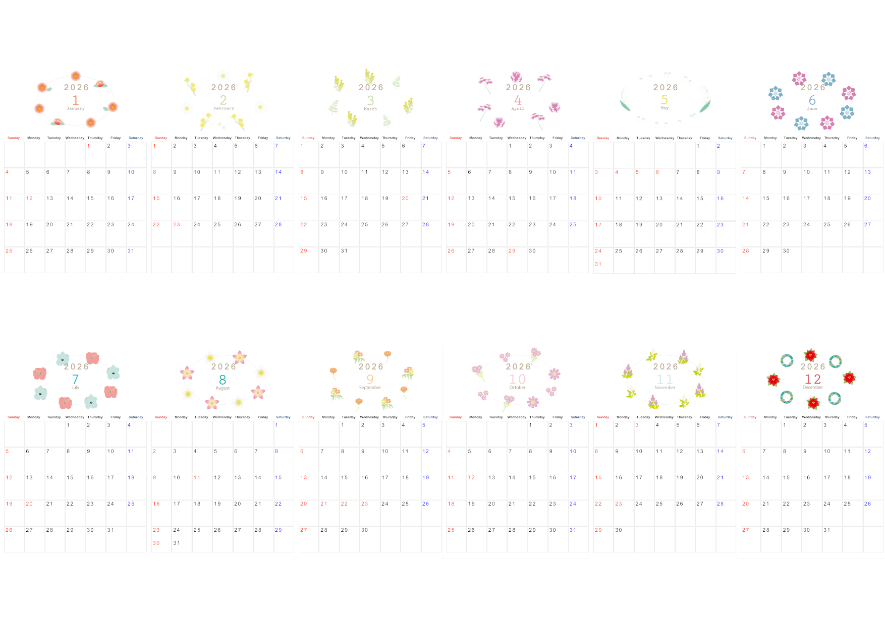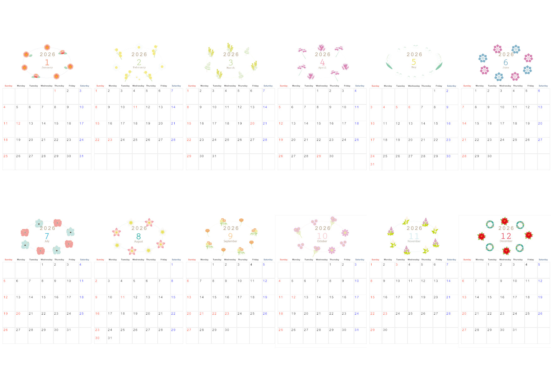 2026年・無料のカレンダーテンプレート