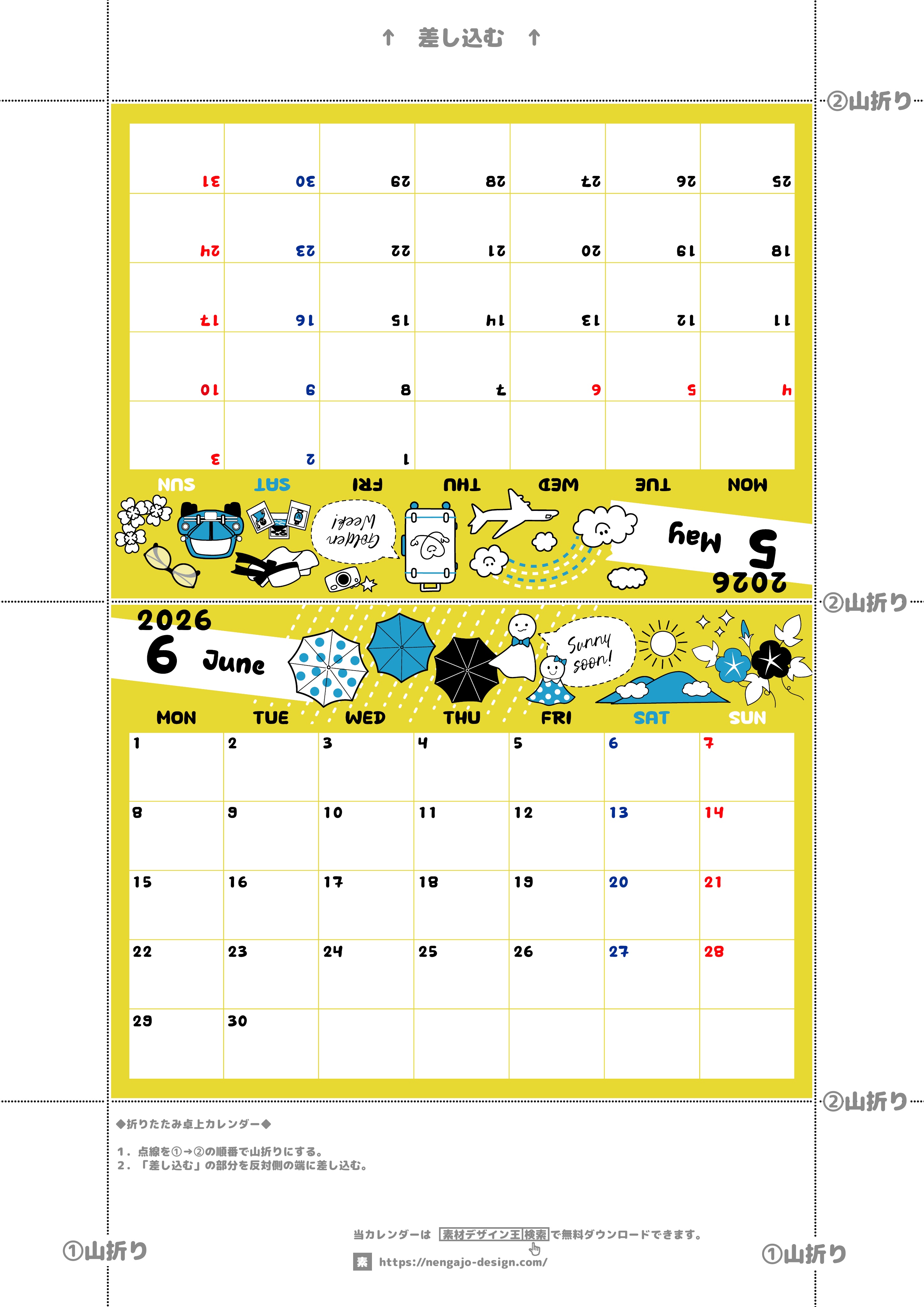 2026年・無料のカレンダーテンプレート 2026年の卓上カレンダー(5月・6月)は月曜始まり♪おしゃれな書き込みしやすい日付欄大きめのA4無料素材♪(2026-001205-0631) 素材状デザイン王 2025年4月14日 2026年の卓上カレンダー(5月・6月)は月曜始まり♪おしゃれな書き込みしやすい日付欄大きめのA4無料素材♪(2026-001205-0631) おしゃれ カレンダーデザイン-0012 5月 6月 北欧 月曜始まり 卓上