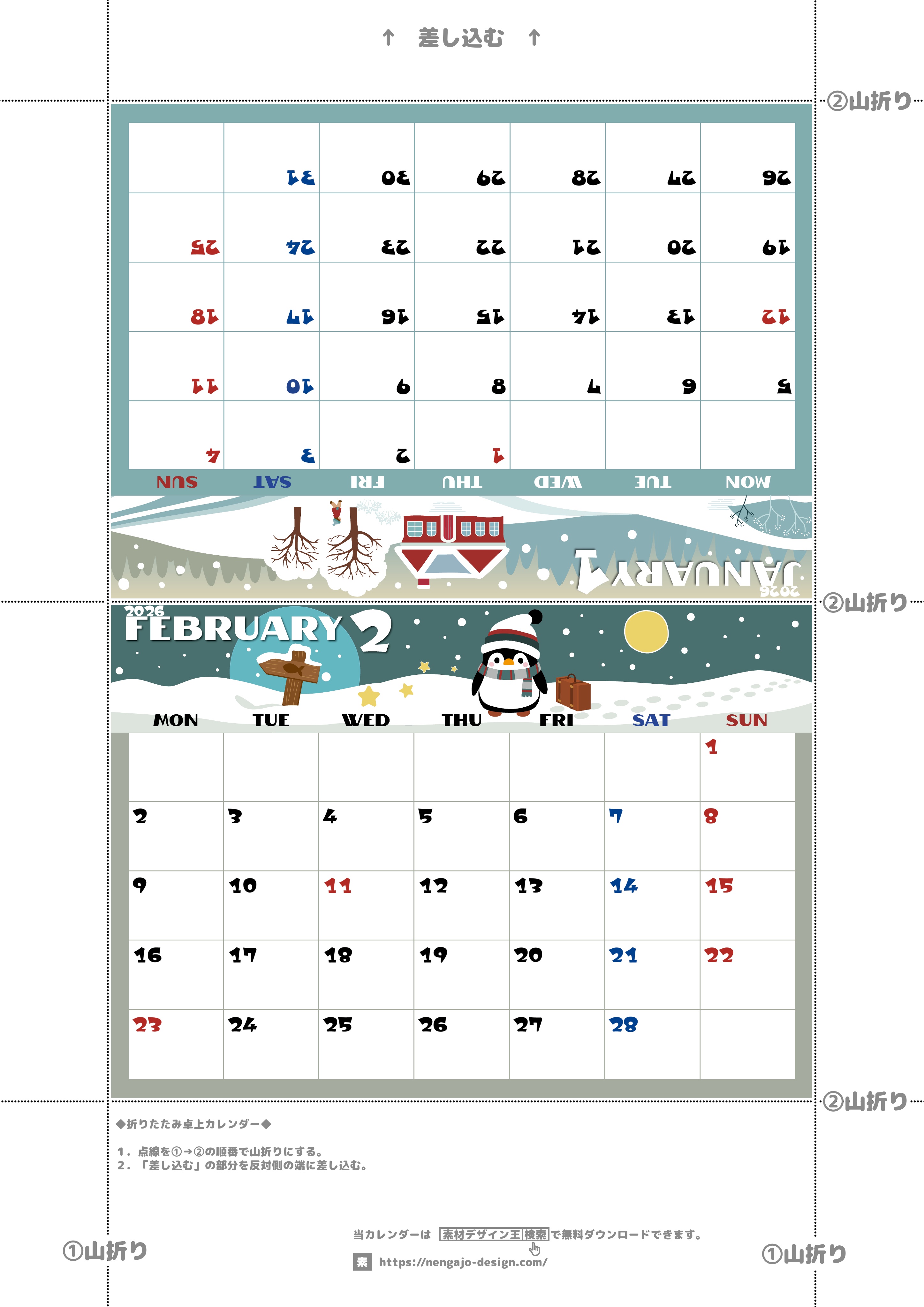 2026年・無料のカレンダーテンプレート 2026年の卓上カレンダー(1月・2月)は月曜始まり♪ポップな書き込みしやすい日付欄大きめのA4無料素材♪(2026-001401-0231) 素材状デザイン王 2025年4月14日 2026年の卓上カレンダー(1月・2月)は月曜始まり♪ポップな書き込みしやすい日付欄大きめのA4無料素材♪(2026-001401-0231) ポップ カレンダーデザイン-0014 1月 2月 季節 月曜始まり 卓上
