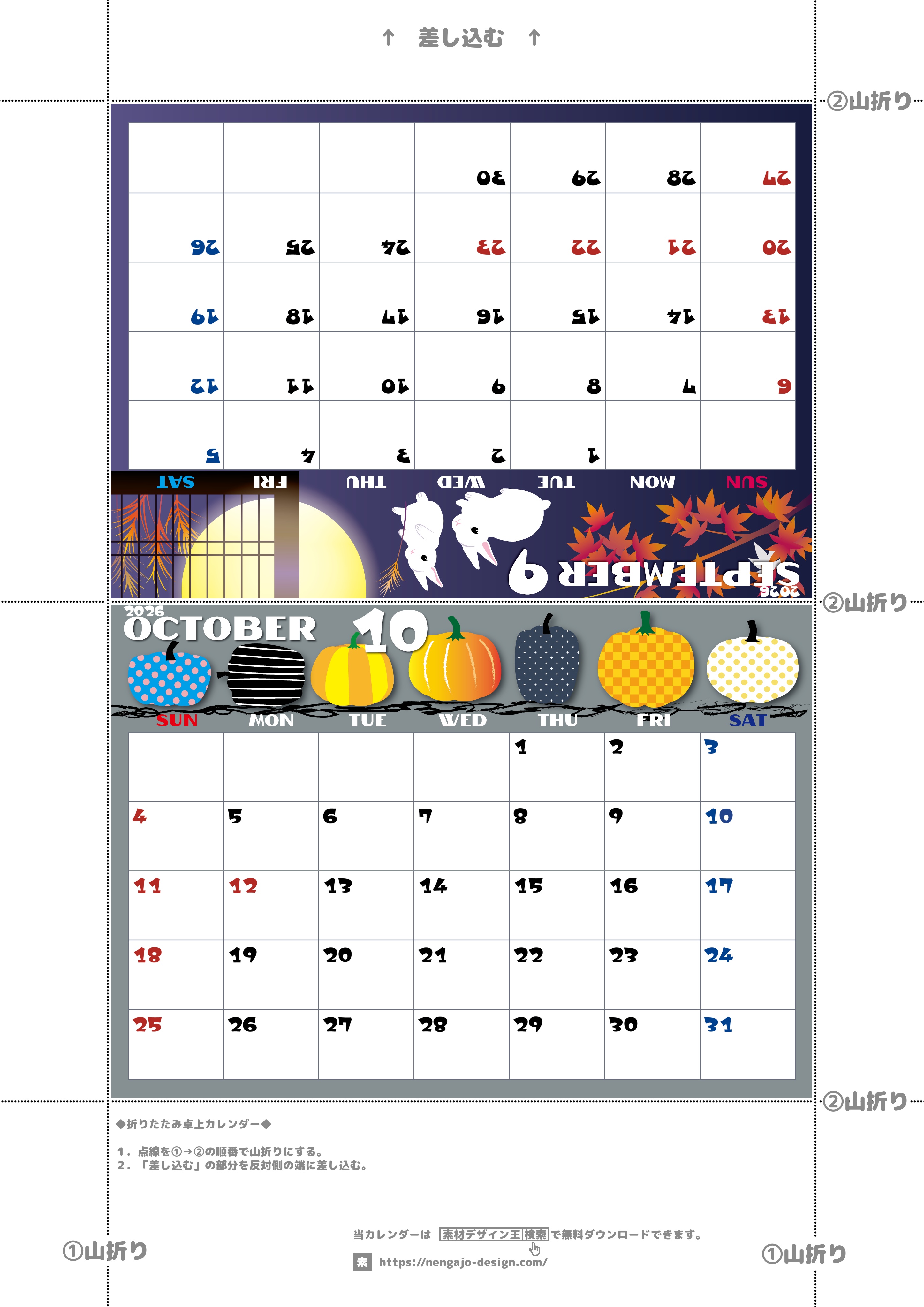 2026年・無料のカレンダーテンプレート 2026年の卓上カレンダー(9月・10月)は日曜始まり♪ポップな書き込みしやすい日付欄大きめのA4無料素材♪(2026-001409-1030) 素材状デザイン王 2025年4月14日 2026年の卓上カレンダー(9月・10月)は日曜始まりです。ポップなだけでなく書き込みもしやすい日付欄が大きめのA4無料素材となっています。ダウンロードして印刷利用ください。(2026-001409-1030) ポップ カレンダーデザイン-0014 9月 10月 季節 日曜始まり 卓上