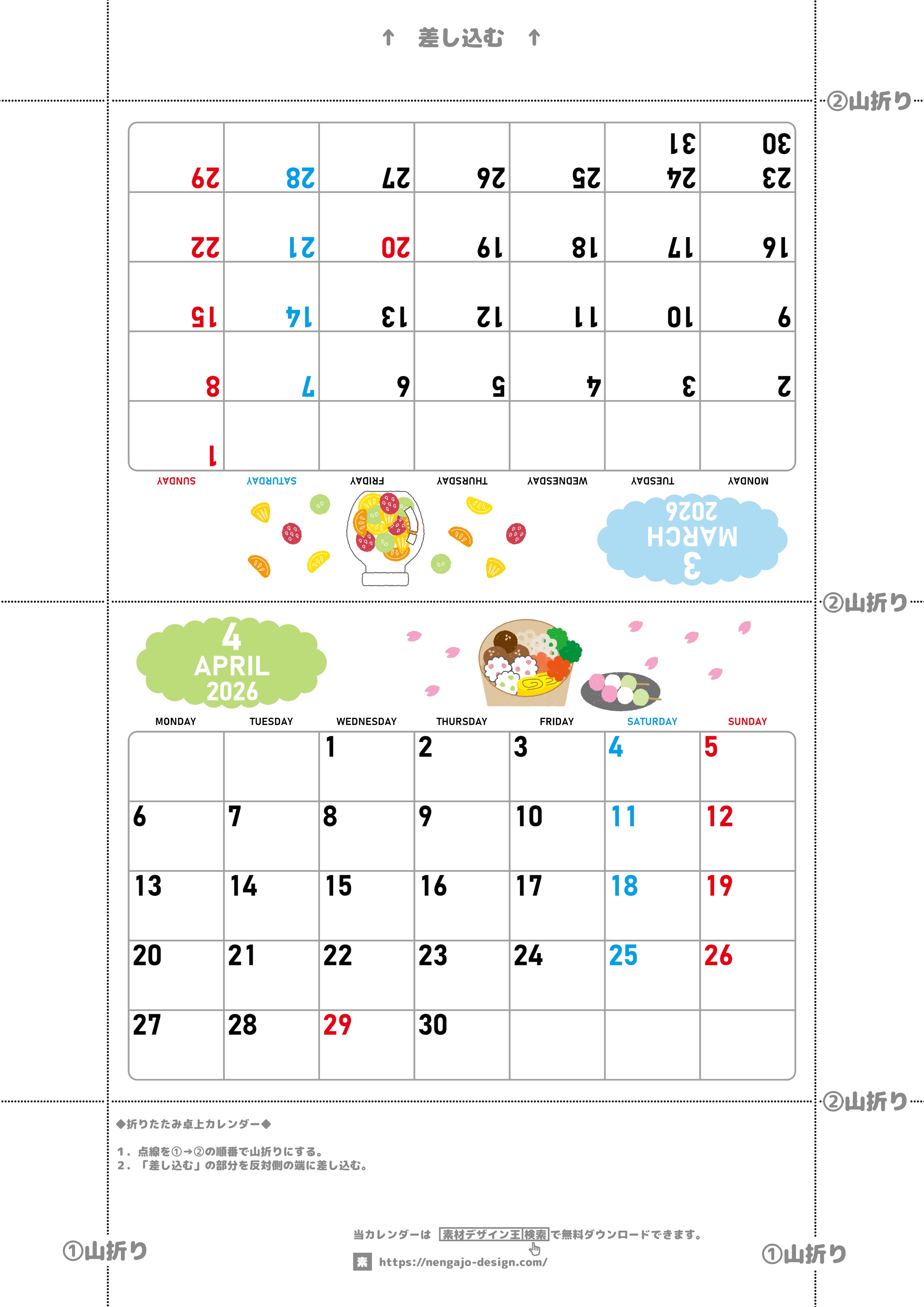 2026年・無料のカレンダーテンプレート 2026年の卓上カレンダー(3月・4月)は月曜始まり♪ポップな家族でも使えるオリジナルイラストつき:ダウンロード無料(2026-001603-0431) 素材状デザイン王 2025年4月14日 2026年の卓上カレンダー(3月・4月)は月曜始まり♪ポップな家族でも使えるオリジナルイラストつき:ダウンロード無料(2026-001603-0431) ポップ カレンダーデザイン-0016 3月 4月 季節 月曜始まり 卓上