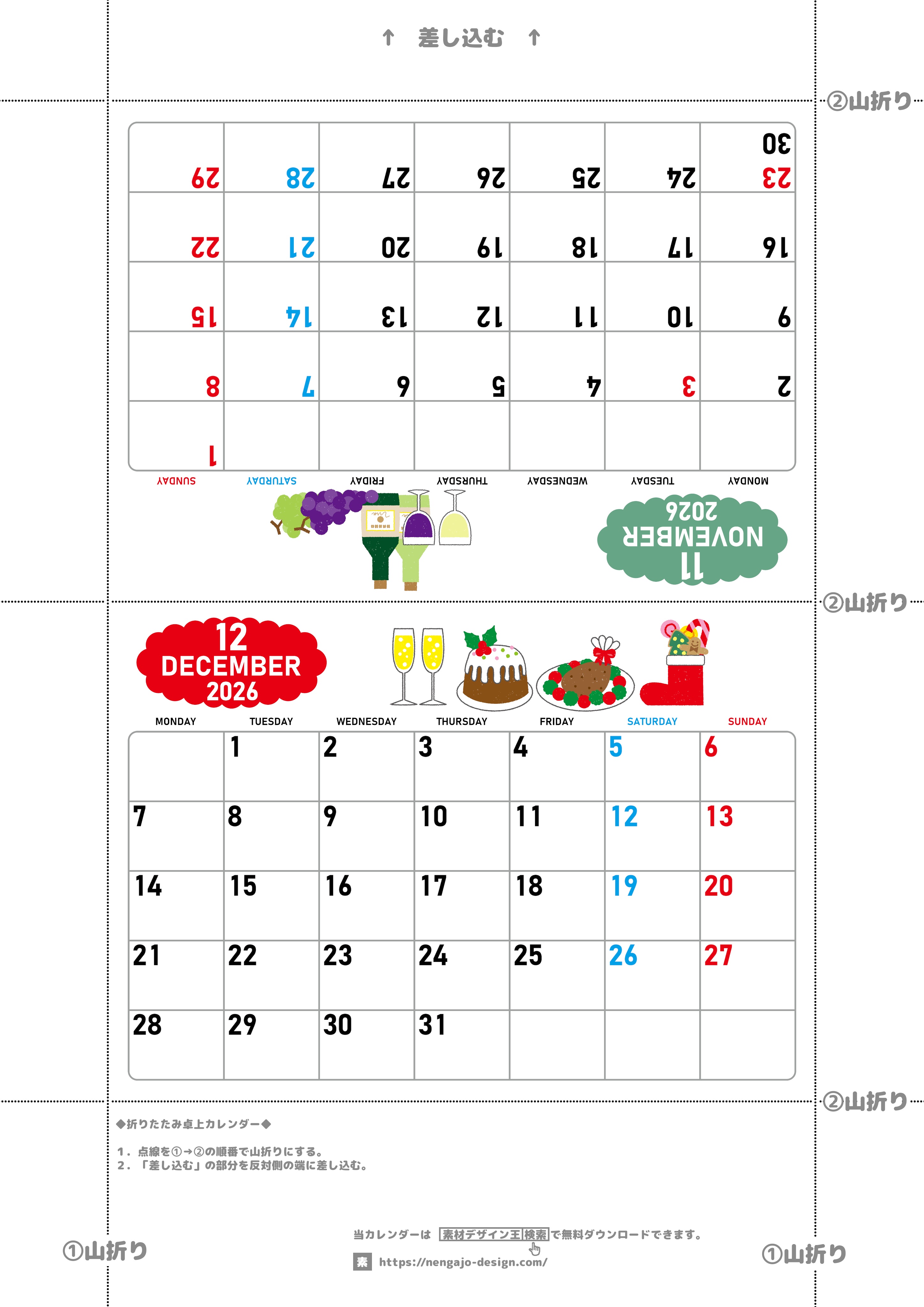 2026年・無料のカレンダーテンプレート 2026年の卓上カレンダー(11月・12月)は月曜始まり♪ポップな家族でも使えるオリジナルイラストつき:ダウンロード無料(2026-001611-1231) 素材状デザイン王 2025年4月14日 2026年の卓上カレンダー(11月・12月)は月曜始まり♪ポップな家族でも使えるオリジナルイラストつき:ダウンロード無料(2026-001611-1231) ポップ カレンダーデザイン-0016 11月 12月 季節 月曜始まり 卓上