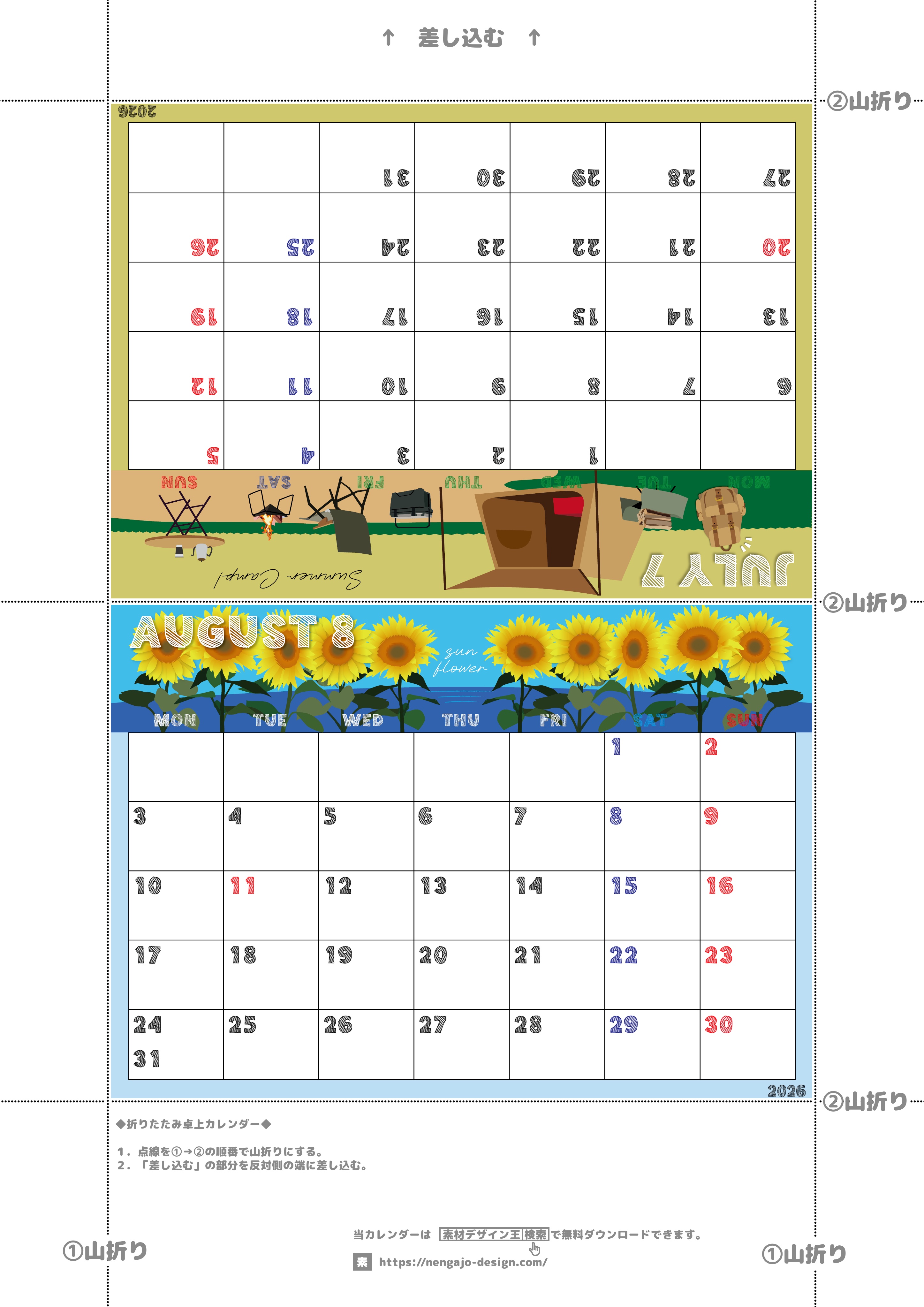 2026年・無料のカレンダーテンプレート 2026年の卓上カレンダー(7月・8月)は月曜始まり♪おしゃれな家族でも使えるオリジナルイラストつき:ダウンロード無料(2026-001707-0831) 素材状デザイン王 2025年4月14日 2026年の卓上カレンダー(7月・8月)は月曜始まり♪おしゃれな家族でも使えるオリジナルイラストつき:ダウンロード無料(2026-001707-0831) おしゃれ カレンダーデザイン-0017 7月 8月 季節 月曜始まり 卓上