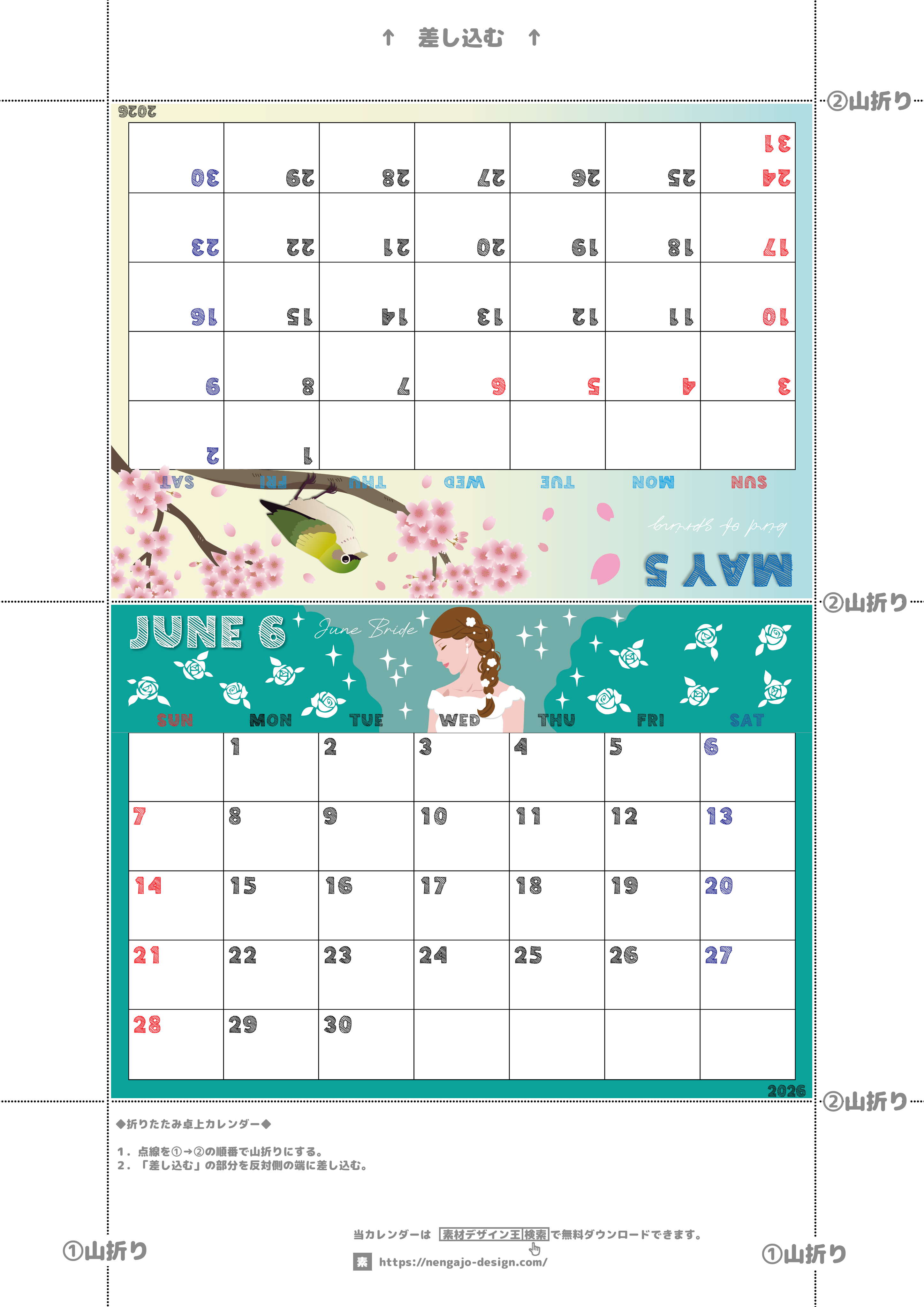 2026年・無料のカレンダーテンプレート 2026年の卓上カレンダー(5月・6月)は日曜始まり♪おしゃれな家族でも使えるオリジナルイラストつき:ダウンロード無料(2026-001705-0630) 素材状デザイン王 2025年4月14日 2026年の卓上カレンダー(5月・6月)は日曜始まりです。おしゃれなデザインで文字も大きめなので家族でも使えます。オリジナルのイラストつきでスケジュール管理が楽しく出来ます。ダウンロード無料でサイズはA4です。(2026-001705-0630) おしゃれ カレンダーデザイン-0017 5月 6月 季節 日曜始まり 卓上