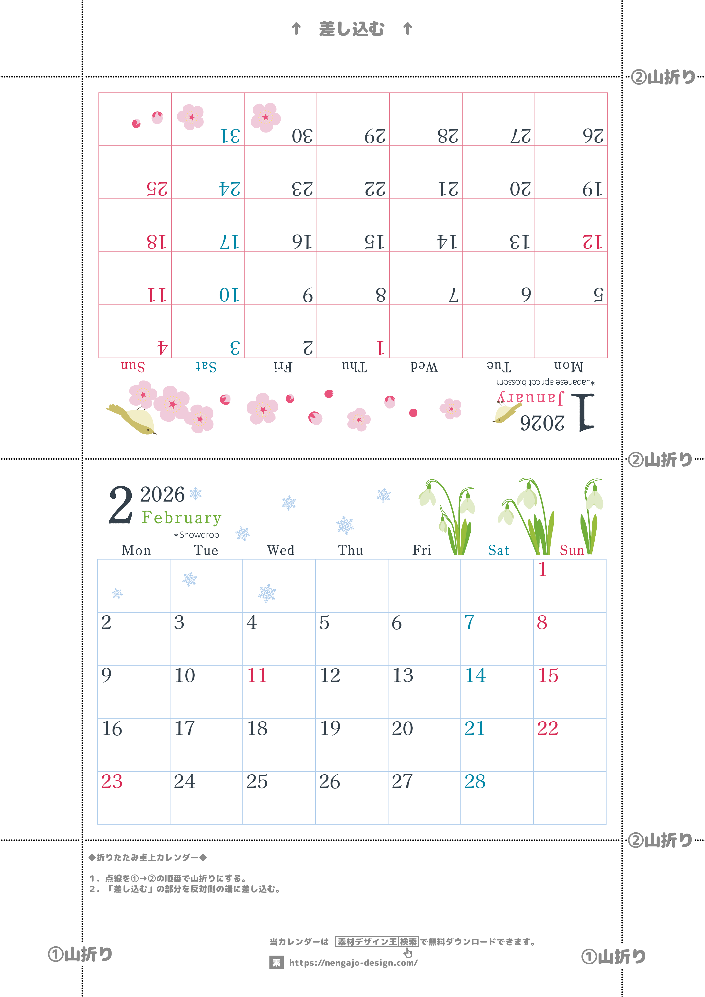 2026年・無料のカレンダーテンプレート 2026年の卓上カレンダー(1月・2月)は月曜始まり♪おしゃれなだけでなく使い方も簡単♪A4サイズ/プリント無料(2026-001901-0231) 素材状デザイン王 2025年4月14日 2026年の卓上カレンダー(1月・2月)は月曜始まり♪おしゃれなだけでなく使い方も簡単♪A4サイズ/プリント無料(2026-001901-0231) おしゃれ カレンダーデザイン-0019 1月 2月 草花 月曜始まり 卓上
