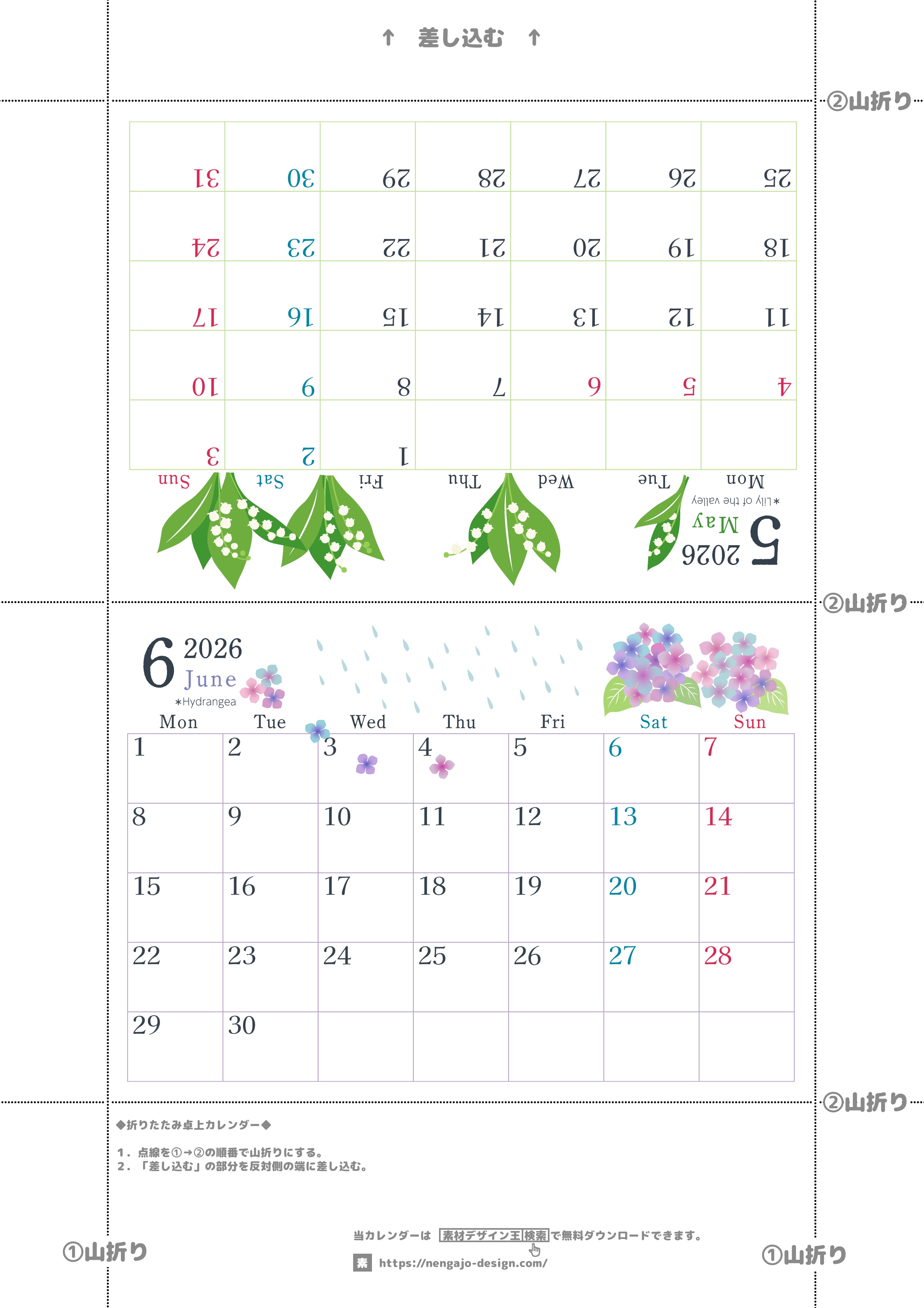 2026年の卓上カレンダー(5月・6月)は月曜始まり♪おしゃれなだけでなく使い方も簡単♪A4サイズ/プリント無料(2026-001905-0631)