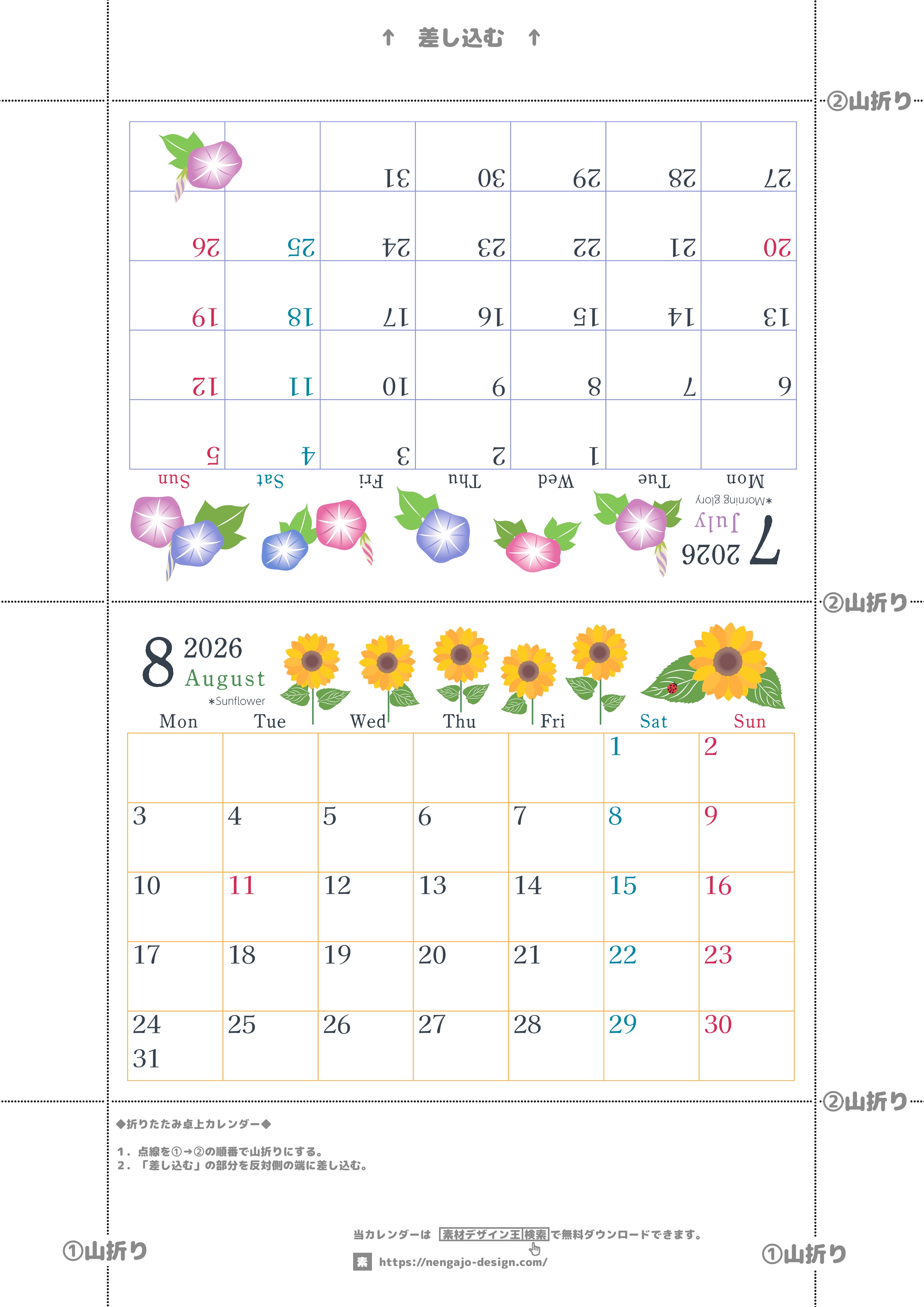 2026年・無料のカレンダーテンプレート 2026年の卓上カレンダー(7月・8月)は月曜始まり♪おしゃれなだけでなく使い方も簡単♪A4サイズ/プリント無料(2026-001907-0831) 素材状デザイン王 2025年4月14日 2026年の卓上カレンダー(7月・8月)は月曜始まり♪おしゃれなだけでなく使い方も簡単♪A4サイズ/プリント無料(2026-001907-0831) おしゃれ カレンダーデザイン-0019 7月 8月 草花 月曜始まり 卓上