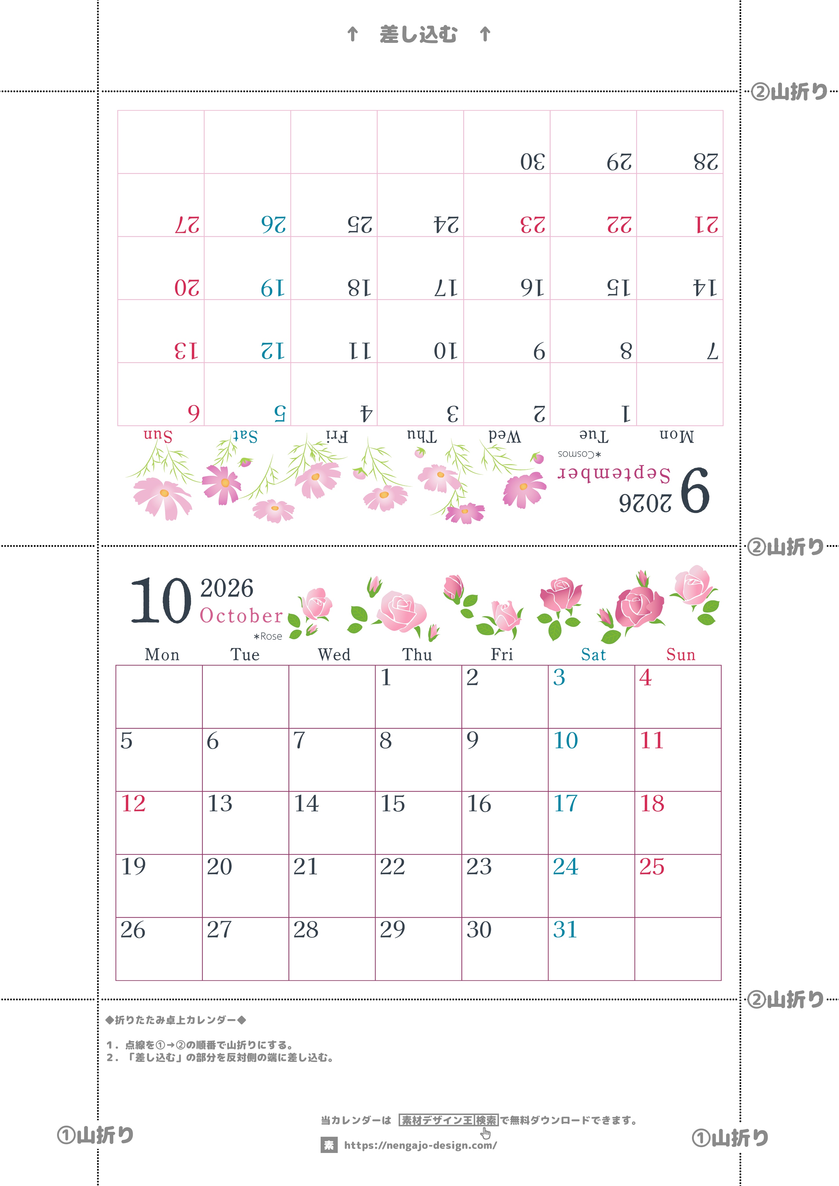 2026年・無料のカレンダーテンプレート 2026年の卓上カレンダー(9月・10月)は月曜始まり♪おしゃれなだけでなく使い方も簡単♪A4サイズ/プリント無料(2026-001909-1031) 素材状デザイン王 2025年4月14日 2026年の卓上カレンダー(9月・10月)は月曜始まり♪おしゃれなだけでなく使い方も簡単♪A4サイズ/プリント無料(2026-001909-1031) おしゃれ カレンダーデザイン-0019 9月 10月 草花 月曜始まり 卓上