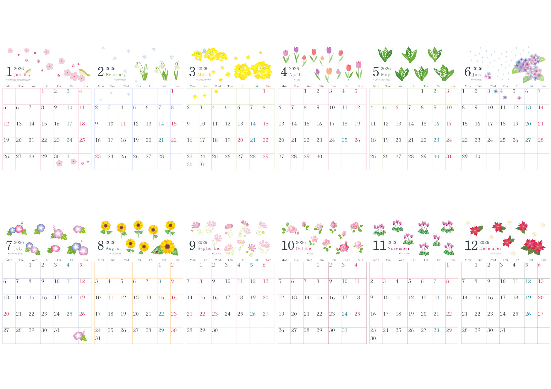 2026年版年間カレンダーを無料ダウンロードできます。A4縦型の月曜始まりで、シンプルで印刷しやすい構成になっています。書き込みスペースも確保されており、家庭や仕事での長期管理に便利です。無駄を省いたすっきりデザインで、見やすさを求める方におすすめです。