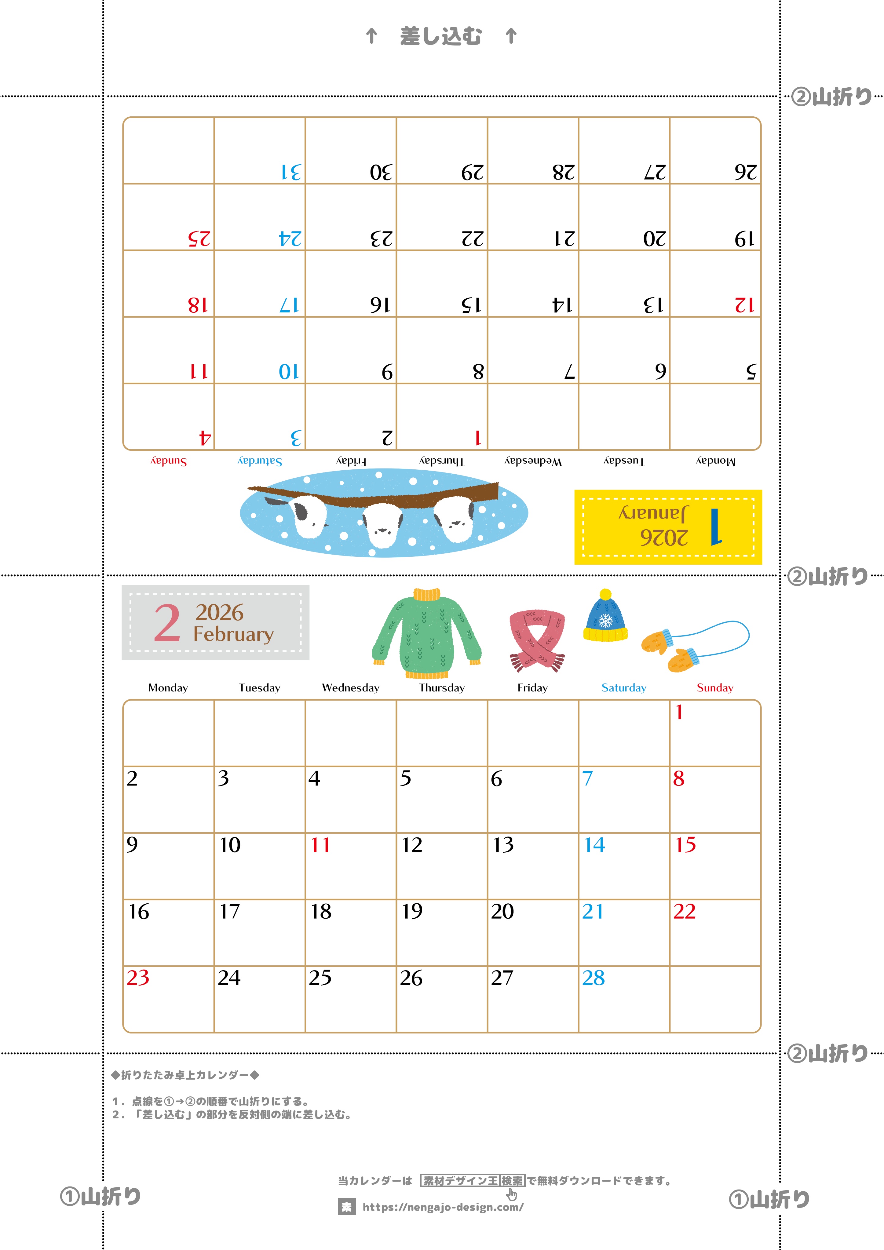 2026年・無料のカレンダーテンプレート 2026年の卓上カレンダー(1月・2月)は月曜始まり♪かわいい文字も大きめで見やすい♪無料でA4プリント♪(2026-002101-0231) 素材状デザイン王 2025年4月14日 2026年の卓上カレンダー(1月・2月)は月曜始まり♪かわいい文字も大きめで見やすい♪無料でA4プリント♪(2026-002101-0231) かわいい カレンダーデザイン-0021 1月 2月 月曜始まり 卓上