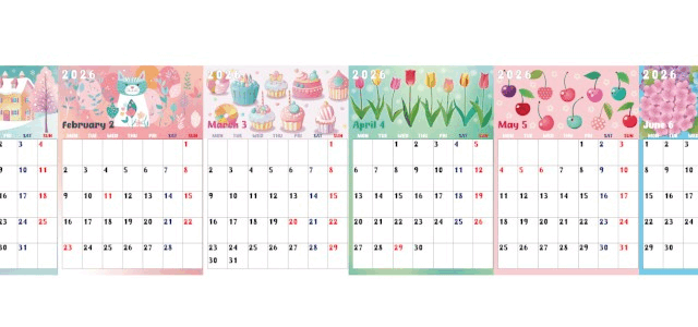 落ち着いた雰囲気の花イラストが優しく彩る年間カレンダーです。A4縦型で月曜始まりの構成は、壁に飾っても見やすく、年間の予定をひと目で整理できる実用性の高さが魅力。上品で控えめなデザインは生活空間にも自然になじみ、家族や仕事のスケジュール管理にも活躍します。無料ダウンロードで手軽に利用できます。