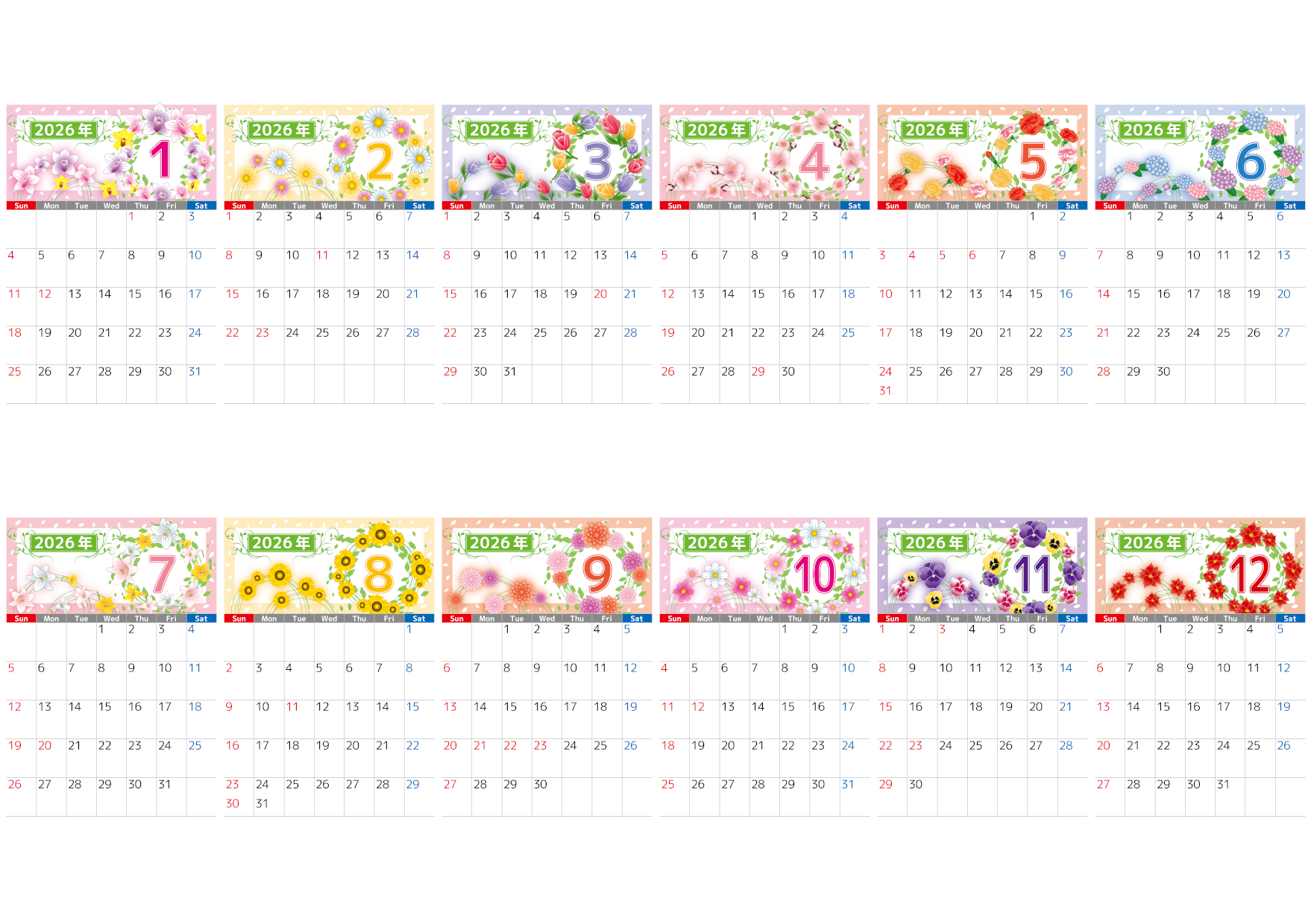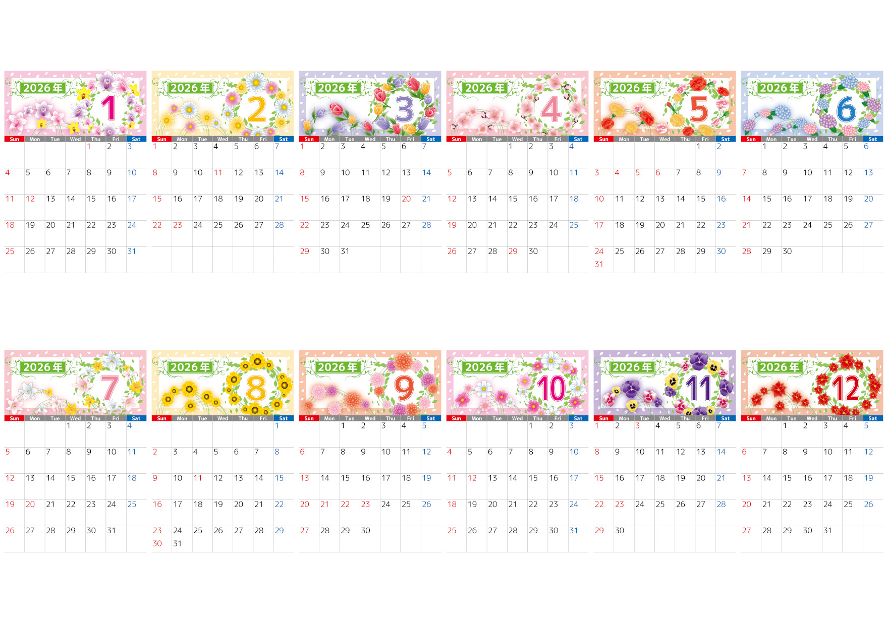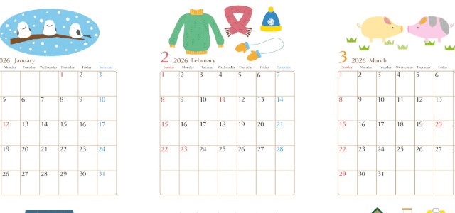 A4縦型で使える2026年間カレンダー♪日曜始まりで充実したスケジュール管理ができる構成!無料ダウンロードできます!