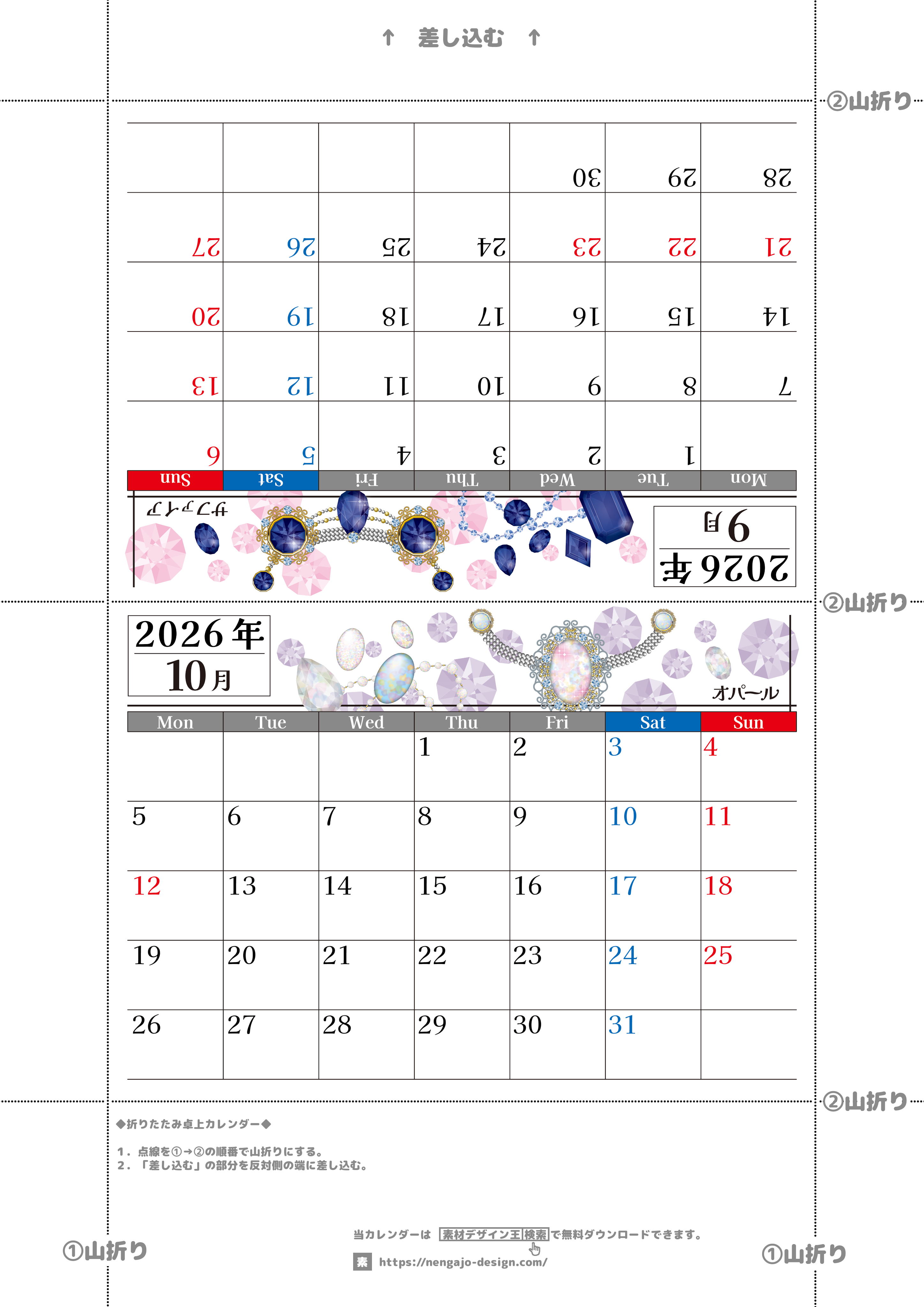 2026年・無料のカレンダーテンプレート 2026年の卓上カレンダー(9月・10月)は月曜始まり♪おしゃれで作り方も簡単サクッとらくちん♪A4サイズの無料素材♪(2026-002509-1031) 素材状デザイン王 2025年4月14日 2025.12.30 2026年の卓上カレンダー(9月・10月)は月曜始まり♪おしゃれで作り方も簡単サクッとらくちん♪A4サイズの無料素材♪(2026-002509-1031) おしゃれ カレンダーデザイン-0025 9月 10月 誕生石・宝石 月曜始まり 卓上