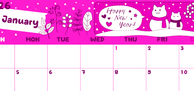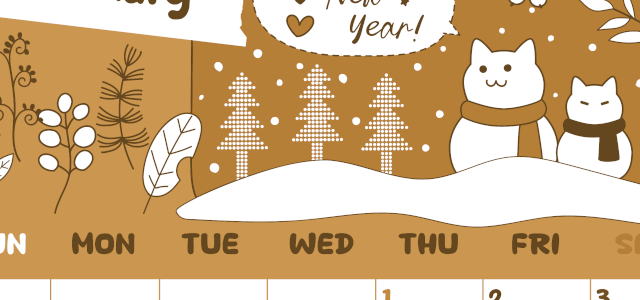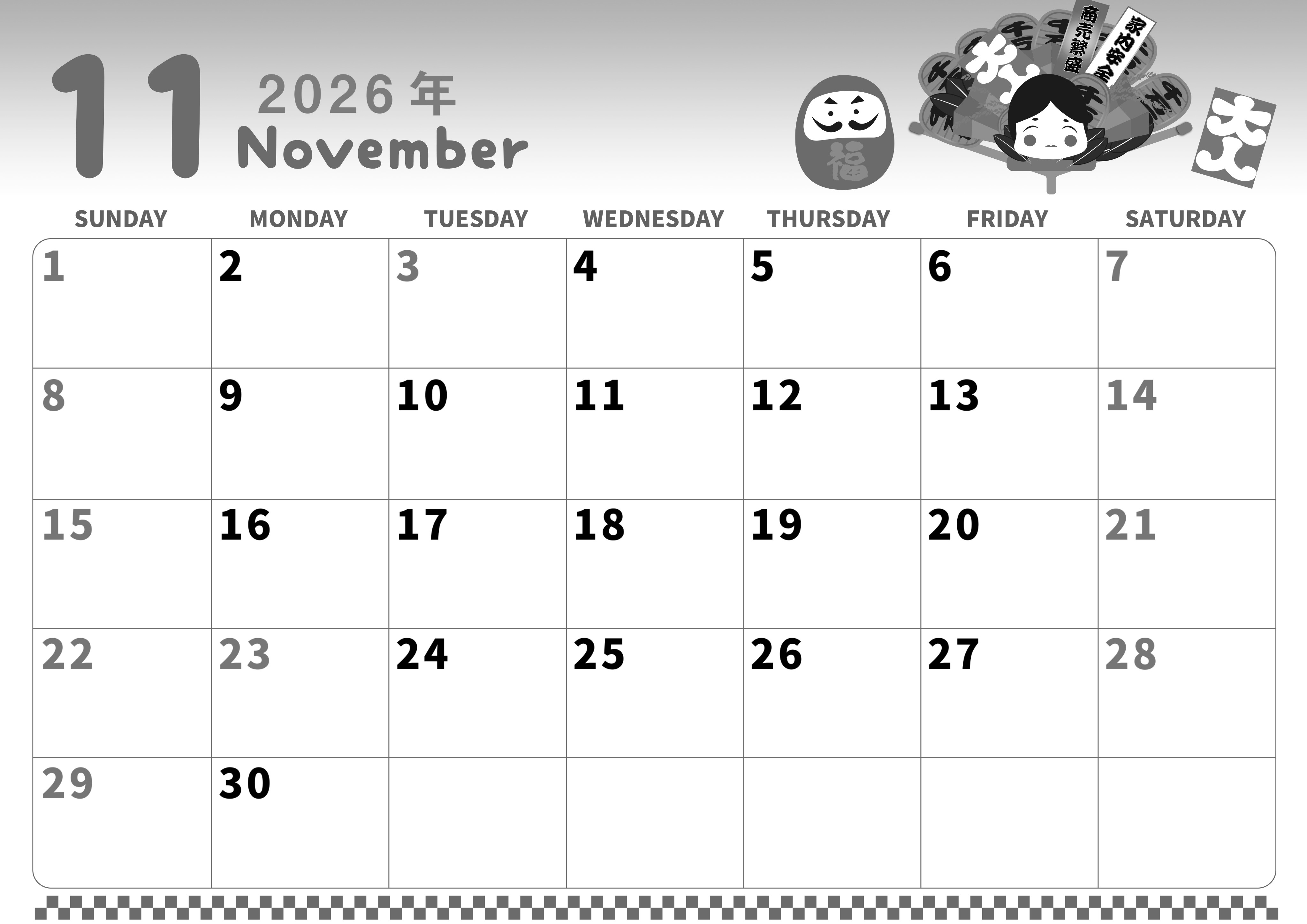 2026年11月横型モノクロの日曜始まり だるまイラストのかわいいA4無料白黒カレンダー(2026-00311100)