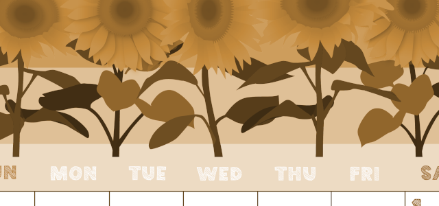 2026年9月横型モノクロの月曜始まり 花イラストのかわいいA4無料白黒カレンダー(2026-00370901)