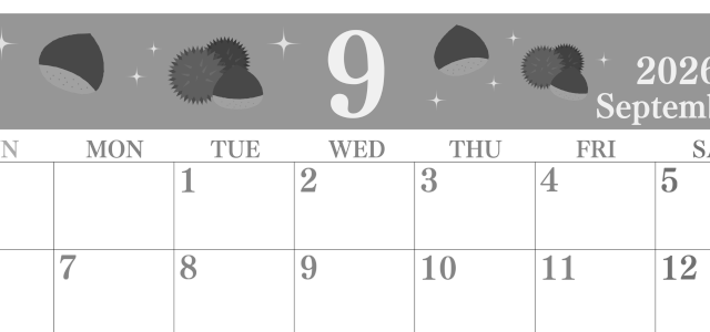 2026年10月横型モノクロの日曜始まりの無料テンプレート白黒カレンダーです。季節の花をぽつんぽつんと描く事で大人の落ち着きとかわいいを両立させたイラストに仕上がっています。使いやすさや見やすさもばっちりです。(2026-00371000)
