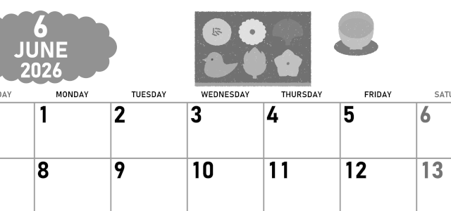 2026年6月縦型モノクロの月曜始まり アジサイがおしゃれなイラストA4無料白黒カレンダー(2026-00410611)