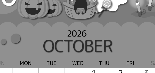 2026年8月横型モノクロの日曜始まりの無料テンプレート白黒カレンダーです。ストライプの背景に大きな向日葵のイラストをポンポンと描いている真夏を感じさせるスタイリッシュでかわいい白黒カレンダー素材です。(2026-00410800)