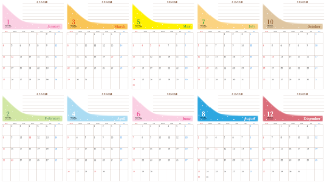 2026年10月横型モノクロの月曜始まり ポップなイラストのかわいいA4無料白黒カレンダー(2026-00481001)