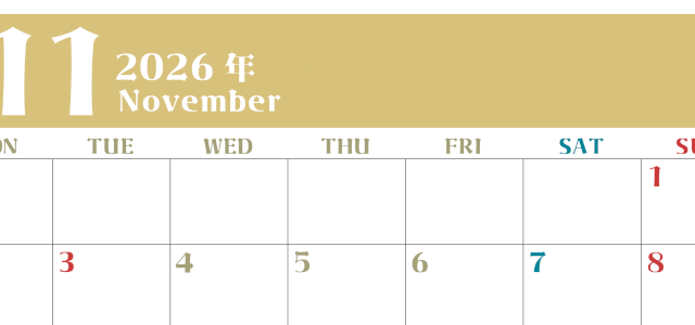 2026年11月横型レトロな日曜始まりの無料テンプレートセピア調カレンダーです。紅葉のイラストが秋ののんびりした様子を醸し出していてかわいいテイストとなっています。(2026-00561100)