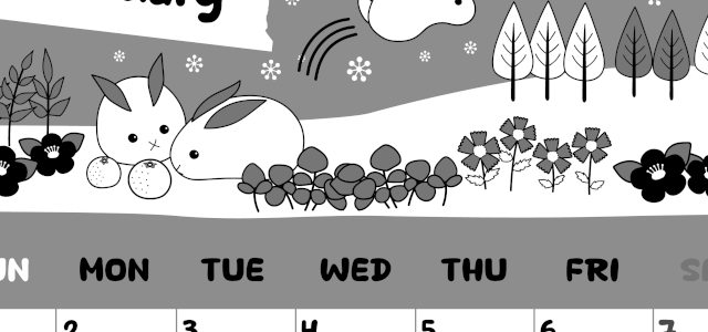 2026年2月横型レトロな月曜始まり 草花がかわいいイラストA4無料セピア調カレンダー(2026-00630201)