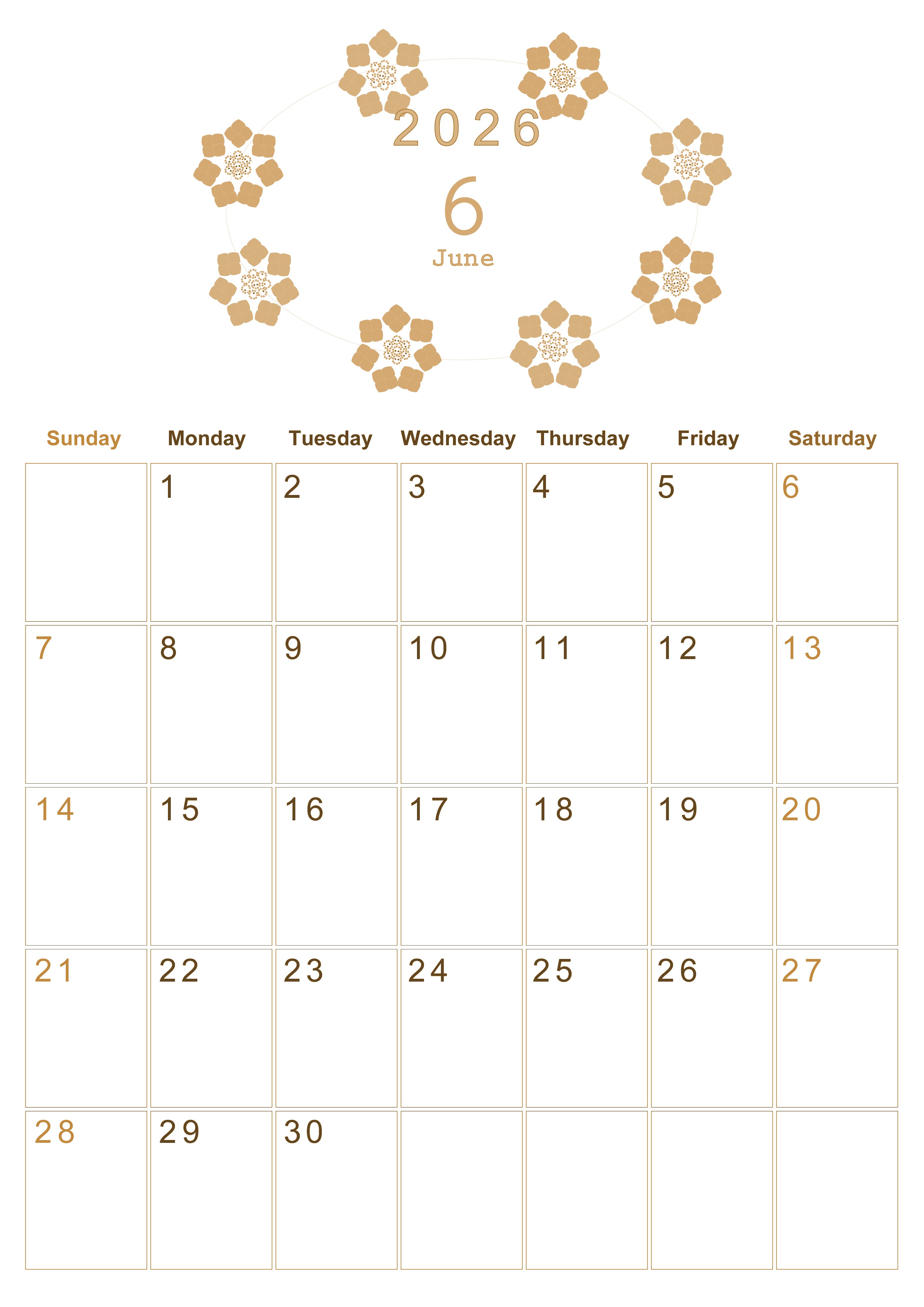 2026年6月縦型レトロな日曜始まりの無料テンプレートセピア調カレンダーです。あじさいのイラストが季節感を漂わせているかわいいデザインのプラン管理を積極的に進めたくなるようなセピア調カレンダー素材となっていてダウンロードは無料です。(2026-00630610)