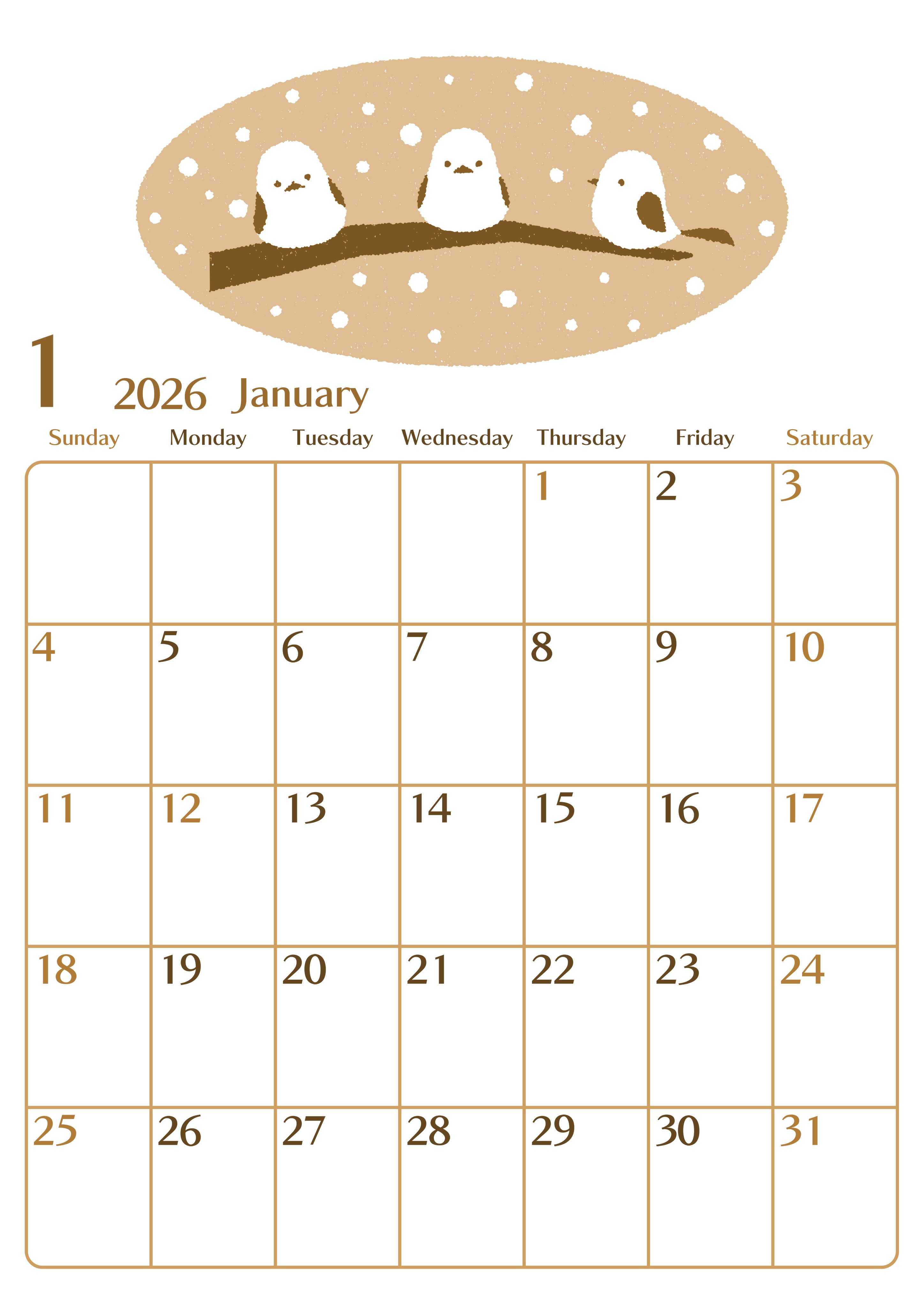 2026年・無料のカレンダーテンプレート 2026年1月縦型レトロな日曜始まり イラストのおしゃれA4無料セピア調カレンダー(2026-00730110) 素材状デザイン王 2025年4月2日 2026年1月縦型レトロな日曜始まりの無料テンプレートセピア調カレンダーです。おしゃれなので飽きることなく使い続けられるようなデザインとなっています。(2026-00730110) 1月 縦型のカレンダー 日曜始まり セピア カレンダーデザイン-0073