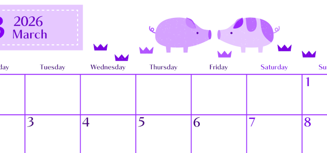 2026年1月横型日曜始まりです。ボタニカルな草花がモノトーンで描かれている一方、枠部分の背景はビビッドなイエローとコントラストがはっきりとしたかわいい背景のオリジナルピンクのカレンダーです。猫耳の雪だるまカップルがかわいいのがポイントです。(2026-00820100)