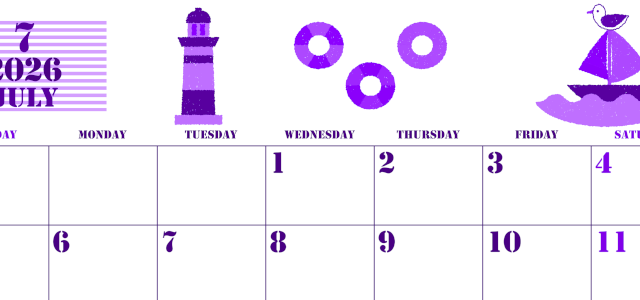 2026年1月縦型日曜始まりパープルのカレンダーです。1月January2026年を乗せた雲が左上に配置されていてパープルのカレンダーとして見やすいフォーマットとなっています。お節や鏡餅やお雑煮のイラストだけでなく曜日が色分けされているのもおすすめポイントな無料パープルのカレンダーです。(2026-01010110)