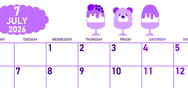 2026年7月縦型日曜始まり  書き込みしやすい文字が大きなA4無料シンプルなカレンダー(2026-01090710)