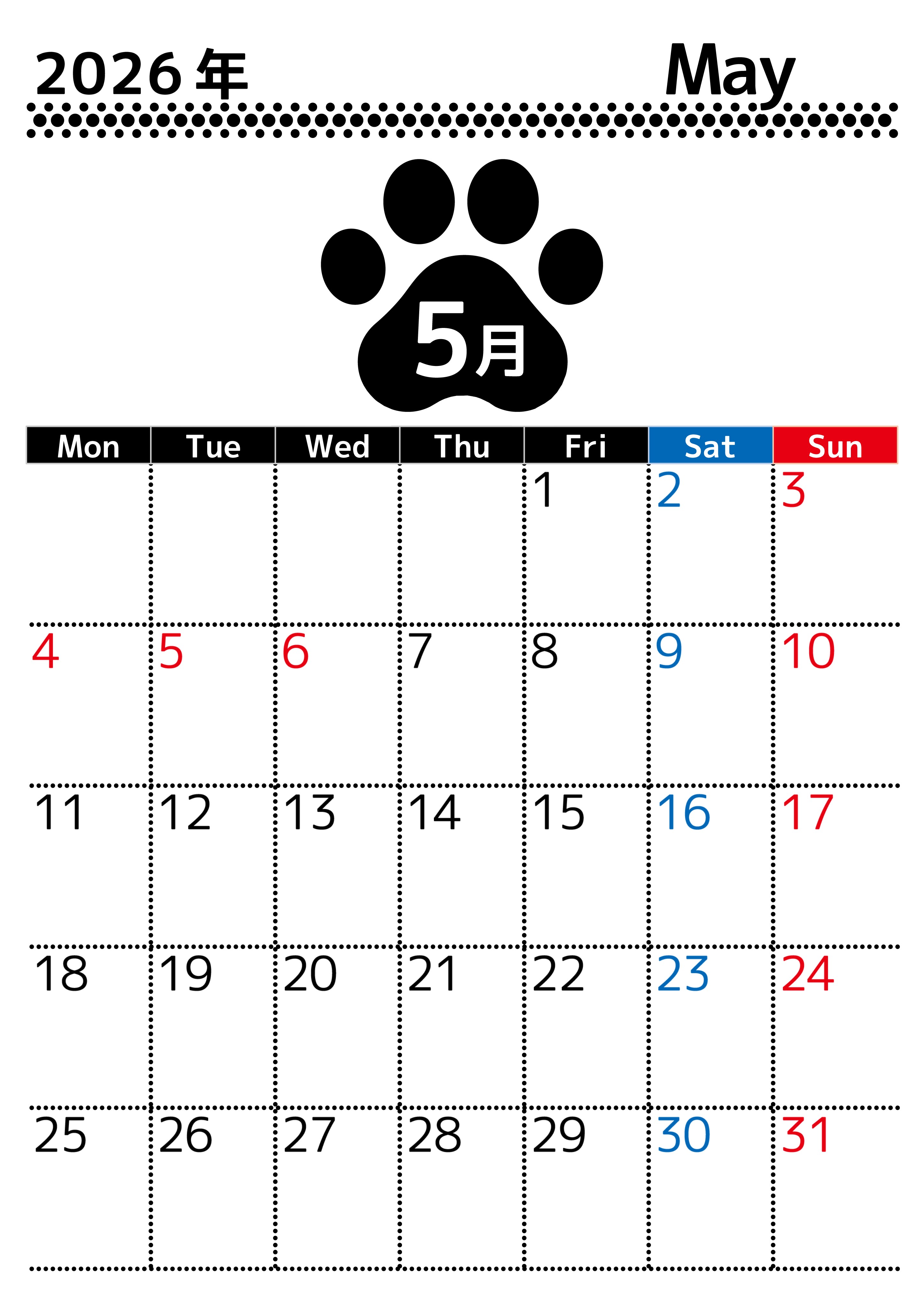 2026年・無料のカレンダーテンプレート 無料カレンダー:2026年5月縦型月曜始まり♪シンプルで書き込み欄が大きいのでおすすめ♪(2026-01210511) 素材状デザイン王 2025年4月8日 無料カレンダー:2026年5月縦型月曜始まりのシンプルで書き込み欄が大きいのでおすすめです。見やすいのでダウンロードをおすすめします。スケジュールを管理しやすいです。(2026-01210511) シンプル 5月 縦型のカレンダー 月曜始まり カレンダーデザイン-0121