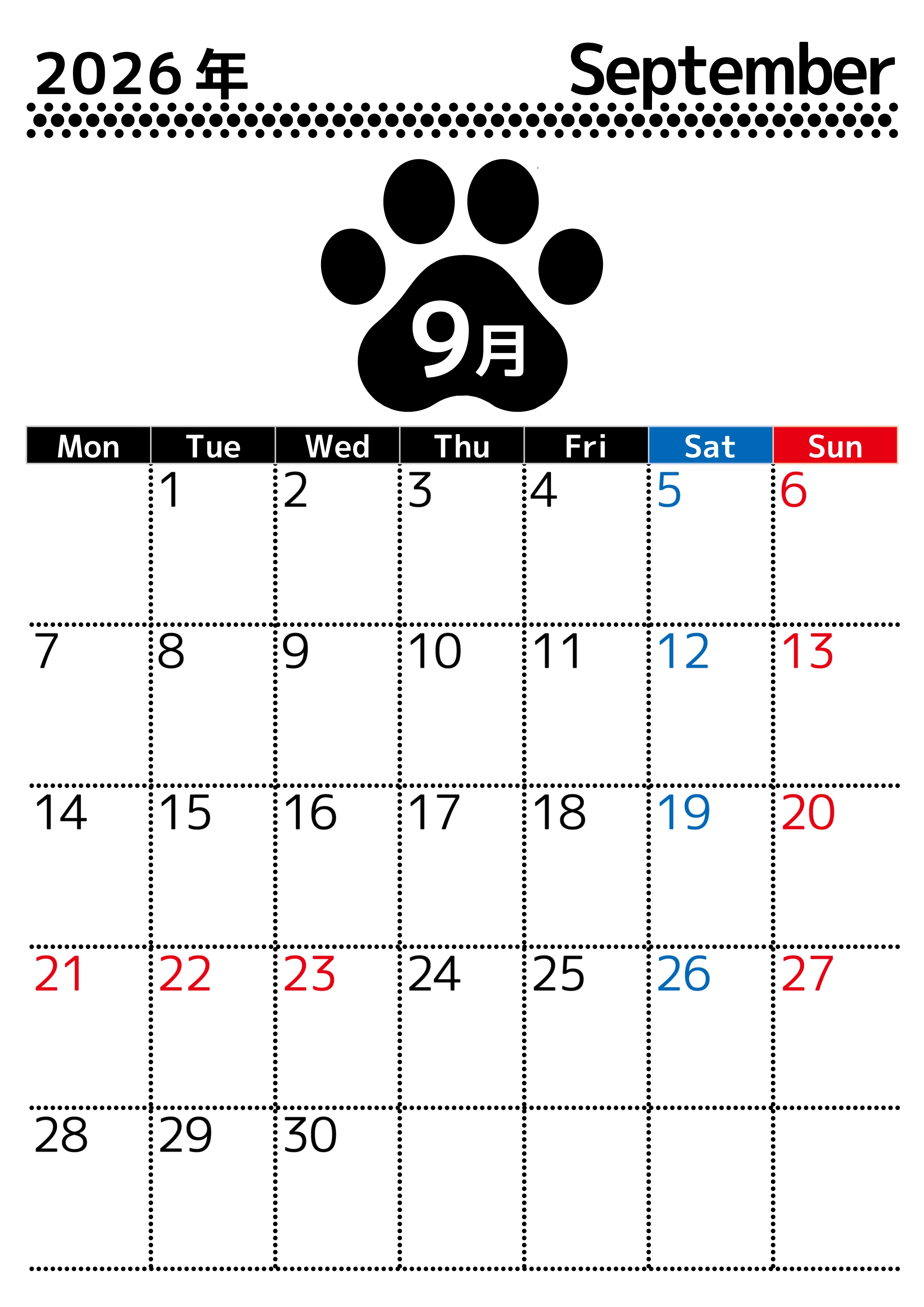 2026年・無料のカレンダーテンプレート 無料カレンダー:2026年9月縦型月曜始まり♪シンプルで書き込み欄が大きいのでおすすめ♪(2026-01210911) 素材状デザイン王 2025年4月8日 無料カレンダー:2026年9月縦型月曜始まりのシンプルで書き込み欄が大きいのでおすすめです。見やすいのでダウンロードをおすすめします。プランの整理にぴったりです。(2026-01210911) シンプル 9月 縦型のカレンダー 月曜始まり カレンダーデザイン-0121