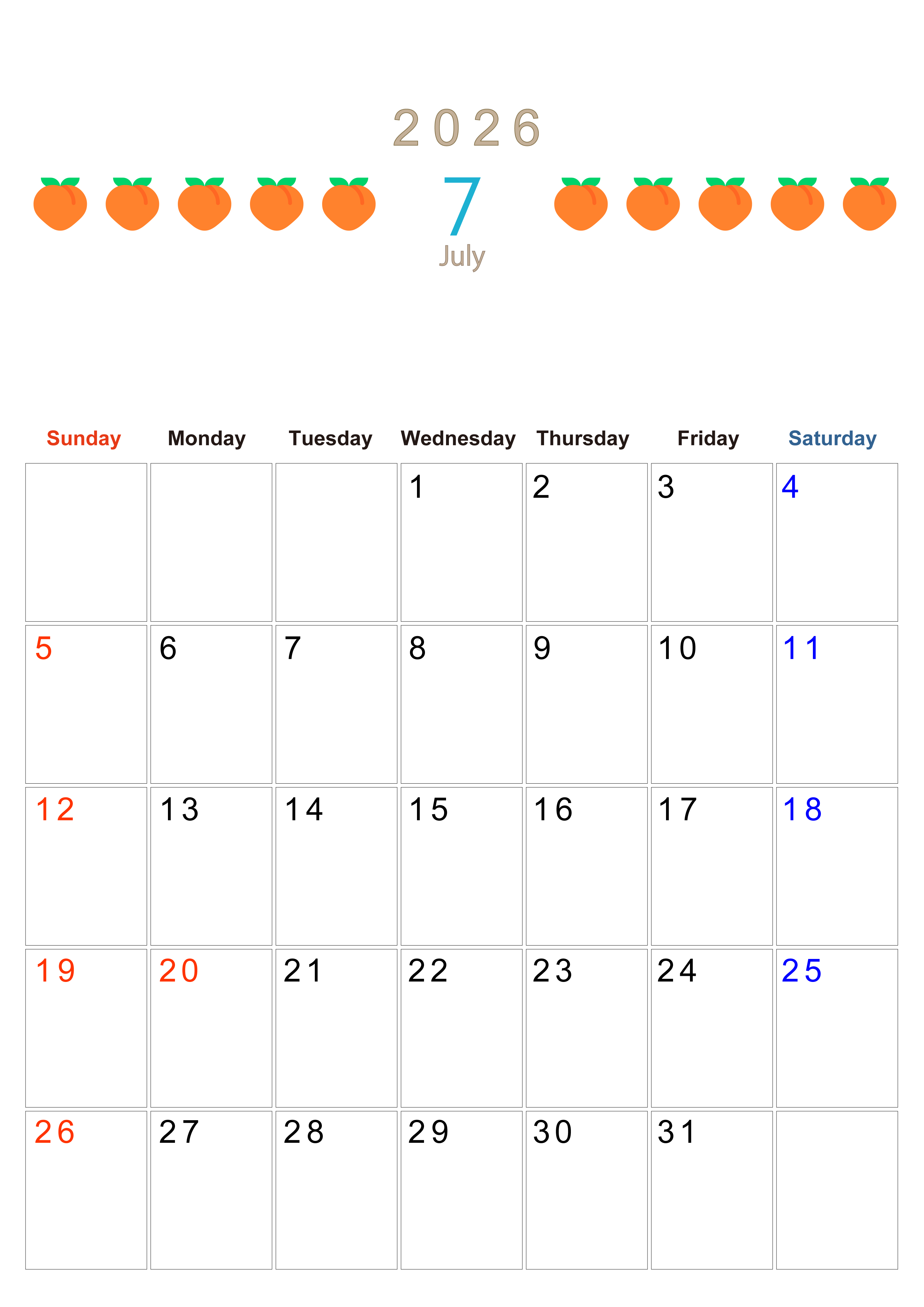 2026年・無料のカレンダーテンプレート 2026年7月カレンダーは縦型日曜始まり でベージュの花がおしゃれ:無料(2026-01350710) 素材状デザイン王 2025年4月11日 2026年7月カレンダーは縦型日曜始まりで旬のフルーツのイラストがおしゃれです。ダウンロードは無料で行えるので気軽に季節感を楽しめます。(2026-01350710) おしゃれ 7月 果物 縦型のカレンダー 日曜始まり カレンダーデザイン-0135