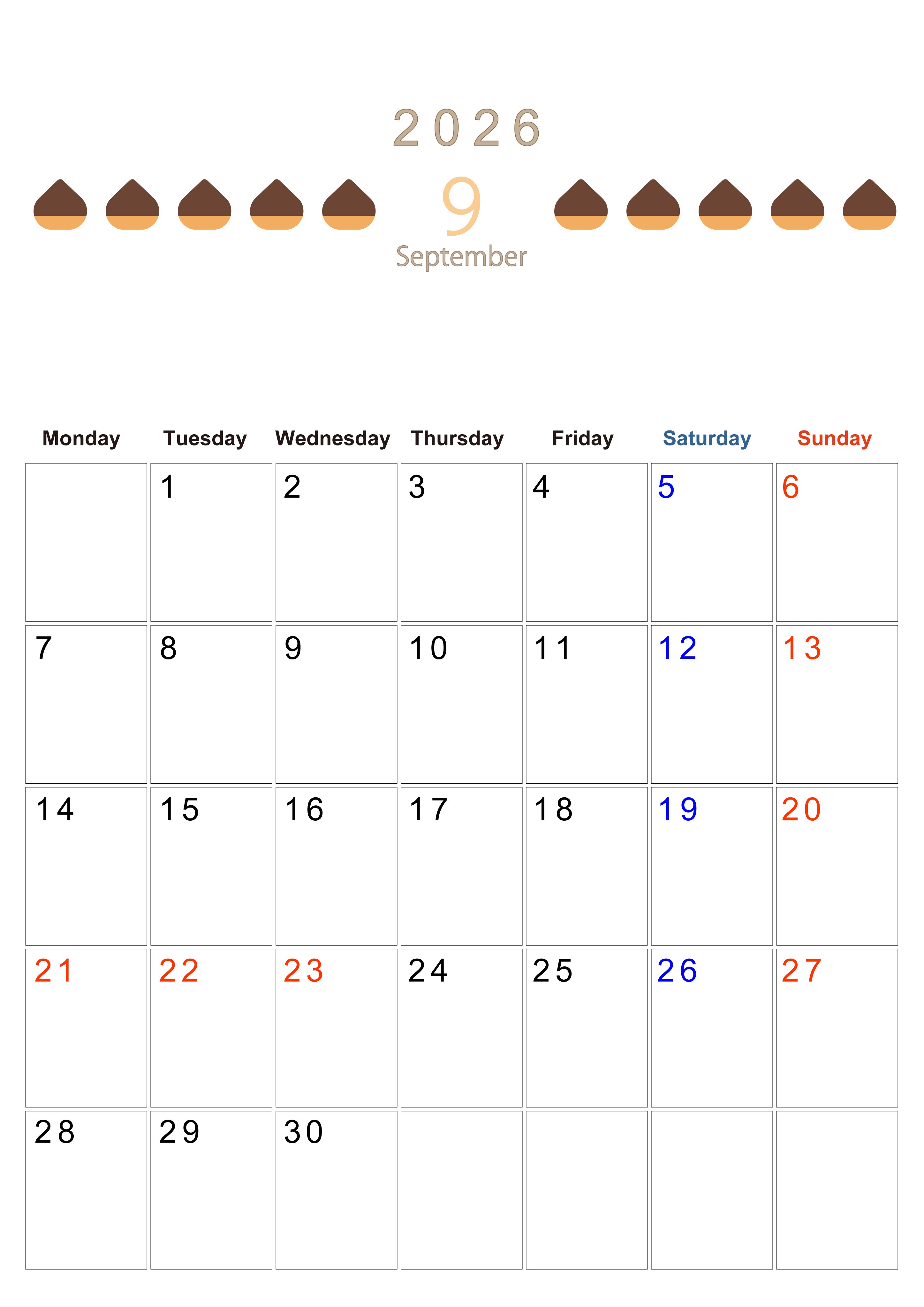 2026年・無料のカレンダーテンプレート 2026年9月カレンダーは縦型月曜始まりで旬のフルーツのイラストがおしゃれ:無料(2026-01350911) 素材状デザイン王 2025年4月11日 2026年9月カレンダーは縦型月曜始まりで旬のフルーツのイラストがおしゃれです。ダウンロードは無料で行えるので気軽に季節感を楽しめます。(2026-01350911) おしゃれ 9月 果物 縦型のカレンダー 月曜始まり カレンダーデザイン-0135