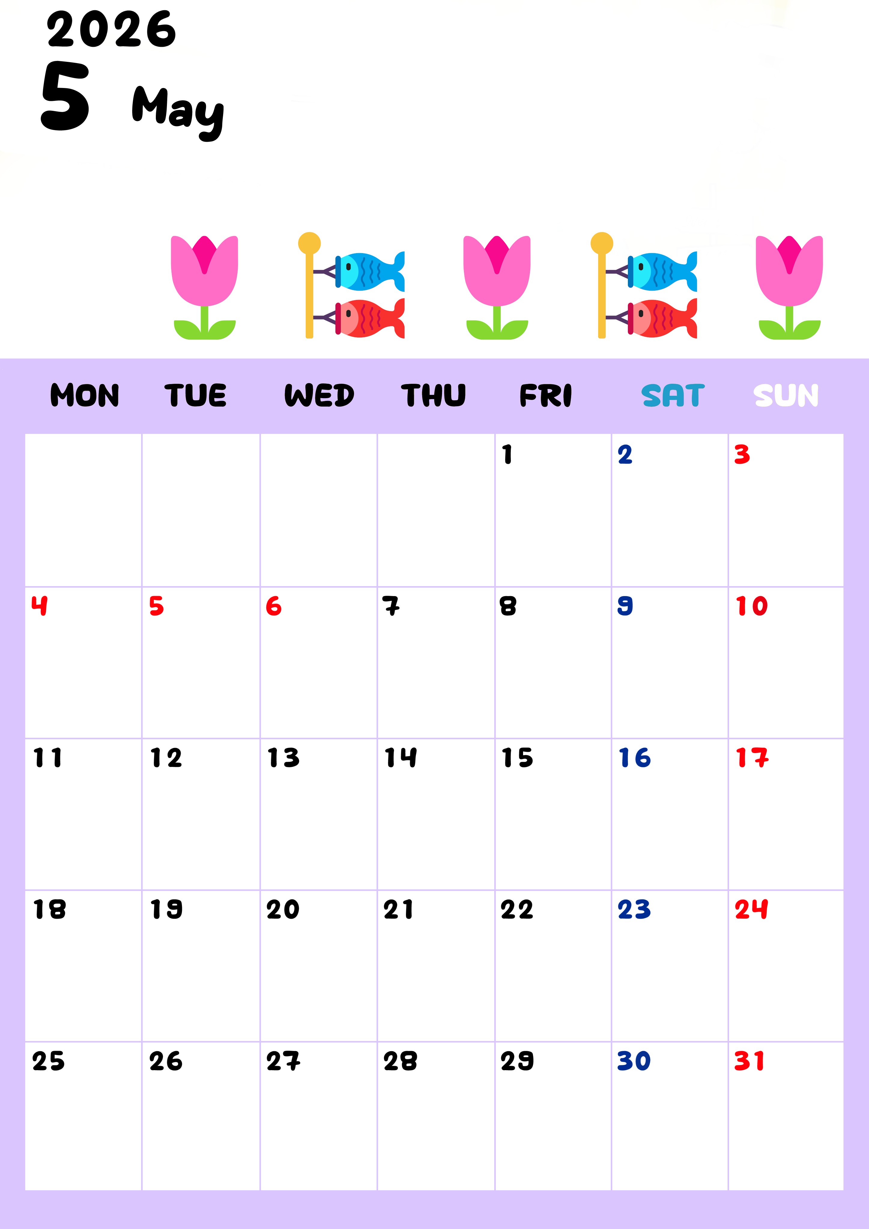 2026年・無料のカレンダーテンプレート 2026年5月カレンダーは縦型月曜始まりで季節の行事の絵文字イラストがかわいい♪ダウンロードは無料♪(2026-01380511) 素材状デザイン王 2025年4月11日 2026年5月カレンダーは縦型月曜始まりで季節の行事の絵文字イラストがかわいいです。ダウンロードは無料なので継続して使いやすいカレンダーです。(2026-01380511) かわいい 5月 季節 縦型のカレンダー 月曜始まり カレンダーデザイン-0138