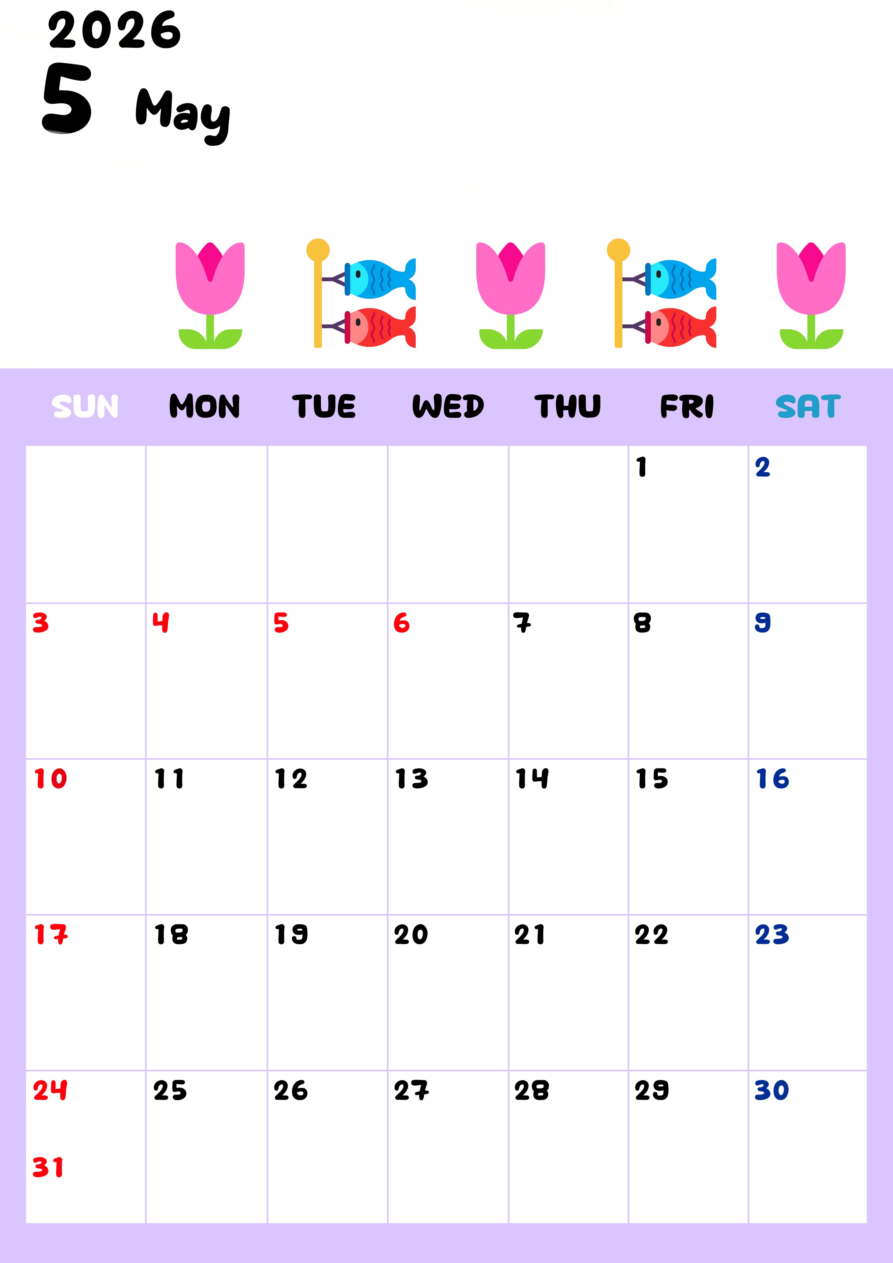 2026年・無料のカレンダーテンプレート 2026年5月カレンダーは縦型日曜始まりで季節の行事の絵文字イラストがかわいい♪ダウンロードは無料♪(2026-01380510) 素材状デザイン王 2025年4月11日 2026年5月カレンダーは縦型日曜始まりで季節の行事の絵文字イラストがかわいいです。ダウンロードは無料なので継続して使いやすいカレンダーです。(2026-01380510) かわいい 5月 季節 縦型のカレンダー 日曜始まり カレンダーデザイン-0138
