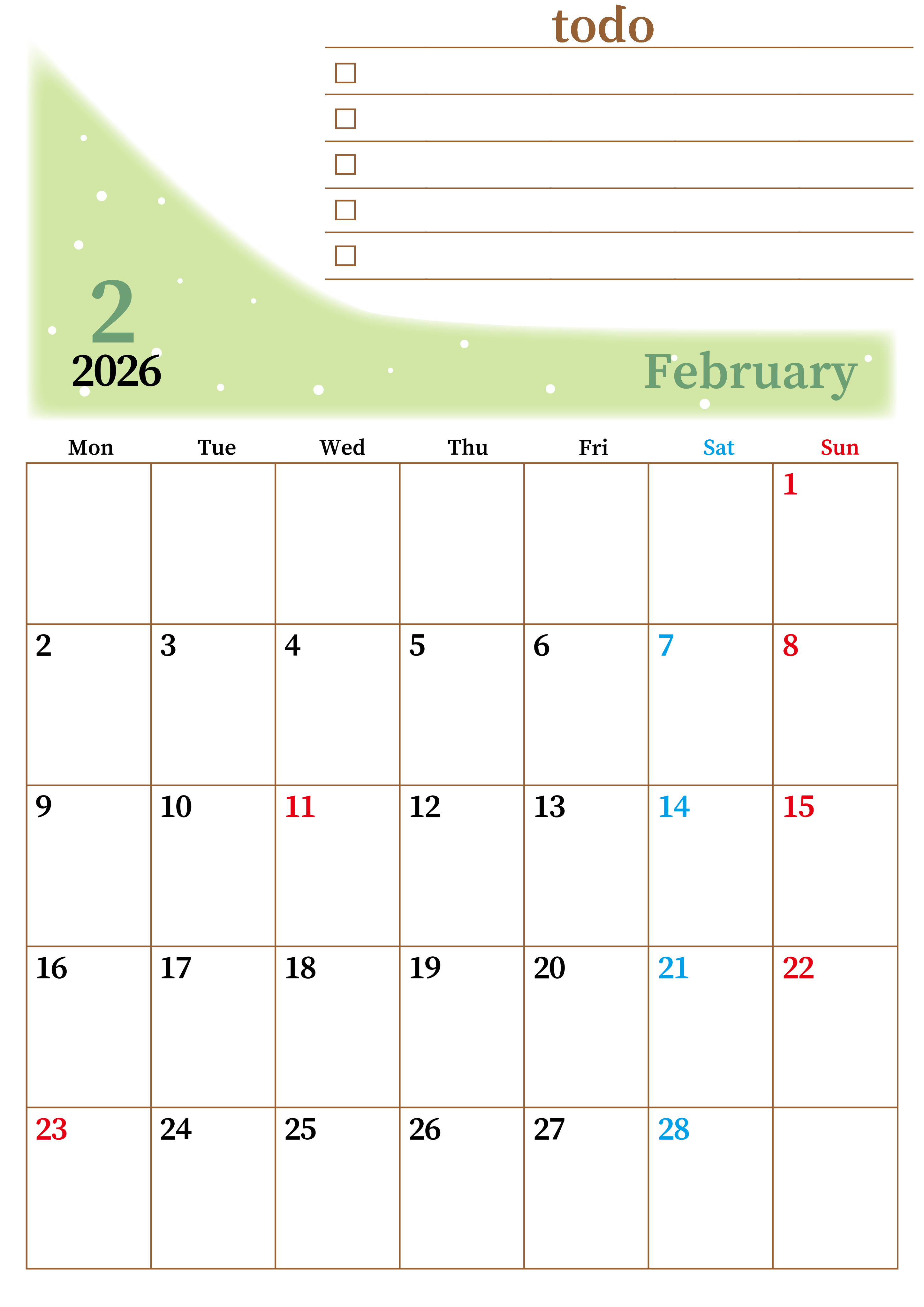 2026年・無料のカレンダーテンプレート 2026年2月カレンダーは縦型月曜始まりでToDoリストつき!毎月色違いで継続の習慣化が簡単!ダウンロード無料(2026-01410211) 素材状デザイン王 2025年4月12日 2026年2月カレンダーは縦型月曜始まりでToDoリストつきです。毎月色違いで継続の習慣化が簡単にできます。ダウンロードは無料なのでおすすめです。(2026-01410211) 2月 縦型のカレンダー 月曜始まり ToDoリスト カレンダーデザイン-0141