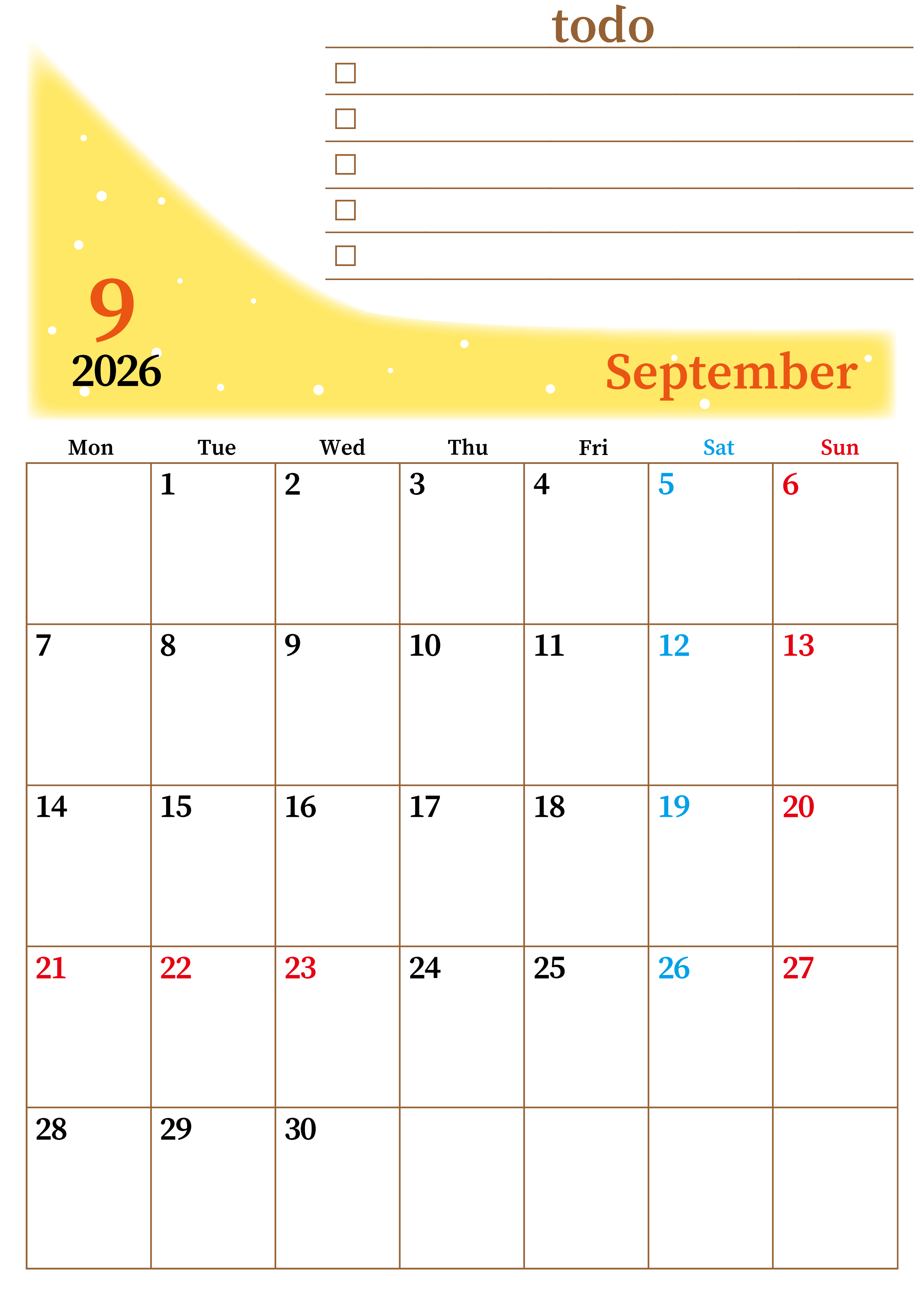 2026年・無料のカレンダーテンプレート 2026年9月カレンダーは縦型月曜始まりでToDoリストつき!毎月色違いで継続の習慣化が簡単!ダウンロード無料(2026-01410911) 素材状デザイン王 2025年4月12日 2026年9月カレンダーは縦型月曜始まりでToDoリストつきです。毎月色違いで継続の習慣化が簡単にできます。ダウンロードは無料なのでおすすめです。(2026-01410911) 9月 縦型のカレンダー 月曜始まり ToDoリスト カレンダーデザイン-0141
