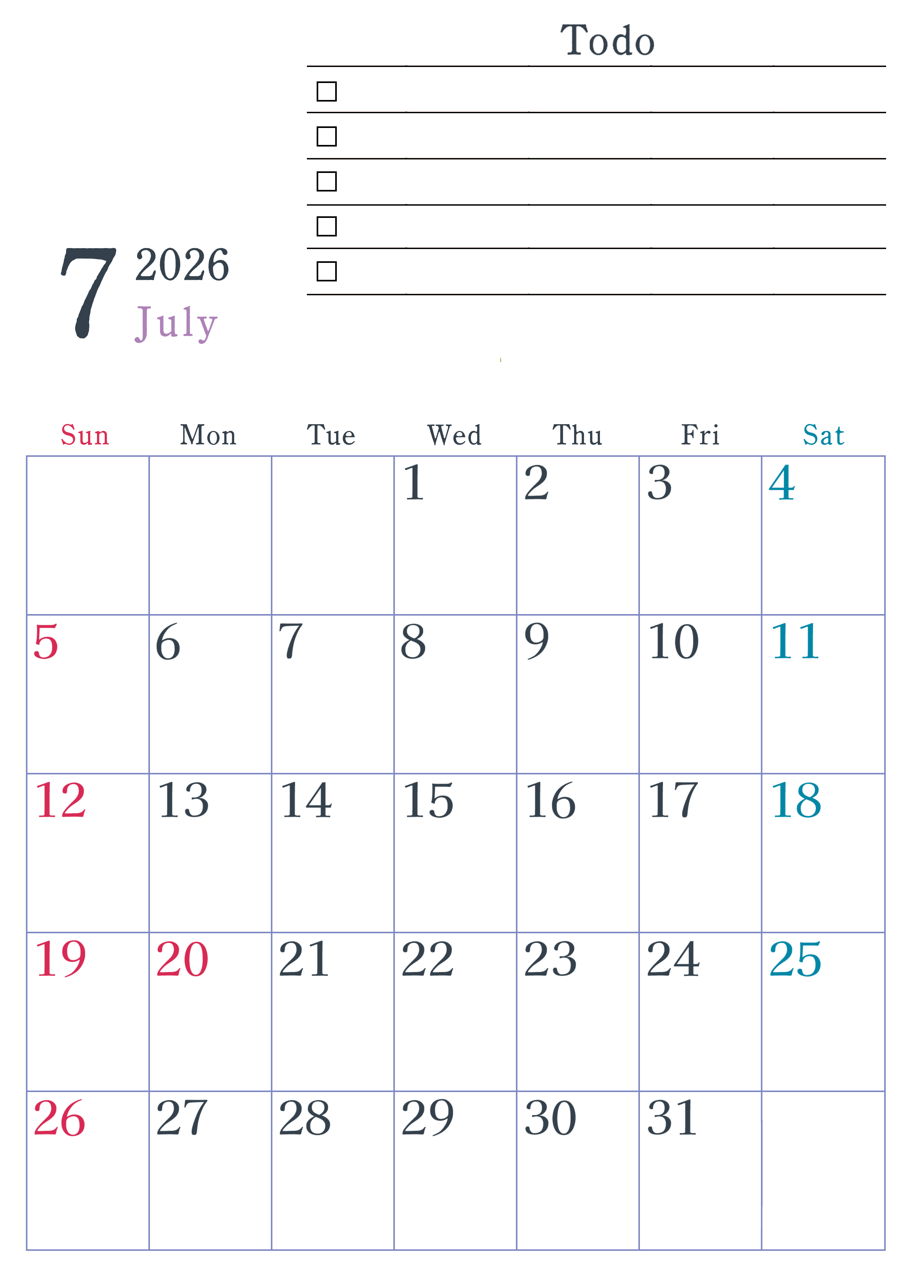 2026年・無料のカレンダーテンプレート 2026年7月カレンダーは縦型日曜始まり でベージュの花がおしゃれ:無料(2026-01440710) 素材状デザイン王 2025年4月12日 2026年7月カレンダーは縦型日曜始まりで使い方はシンプルなToDoリストつきです。無料ダウンロードしてA4印刷しましょう。(2026-01440710) 7月 縦型のカレンダー 日曜始まり ToDoリスト カレンダーデザイン-0144