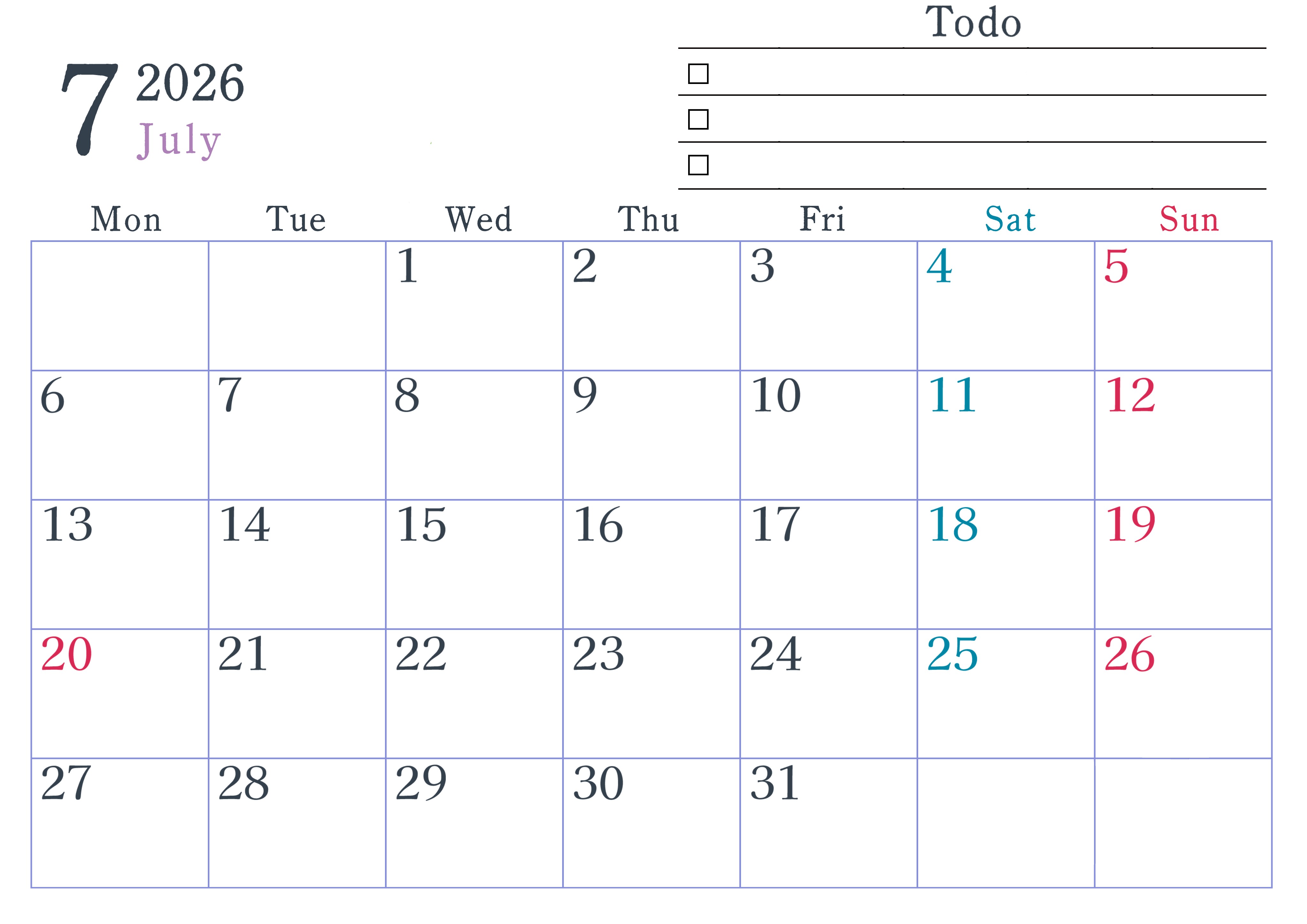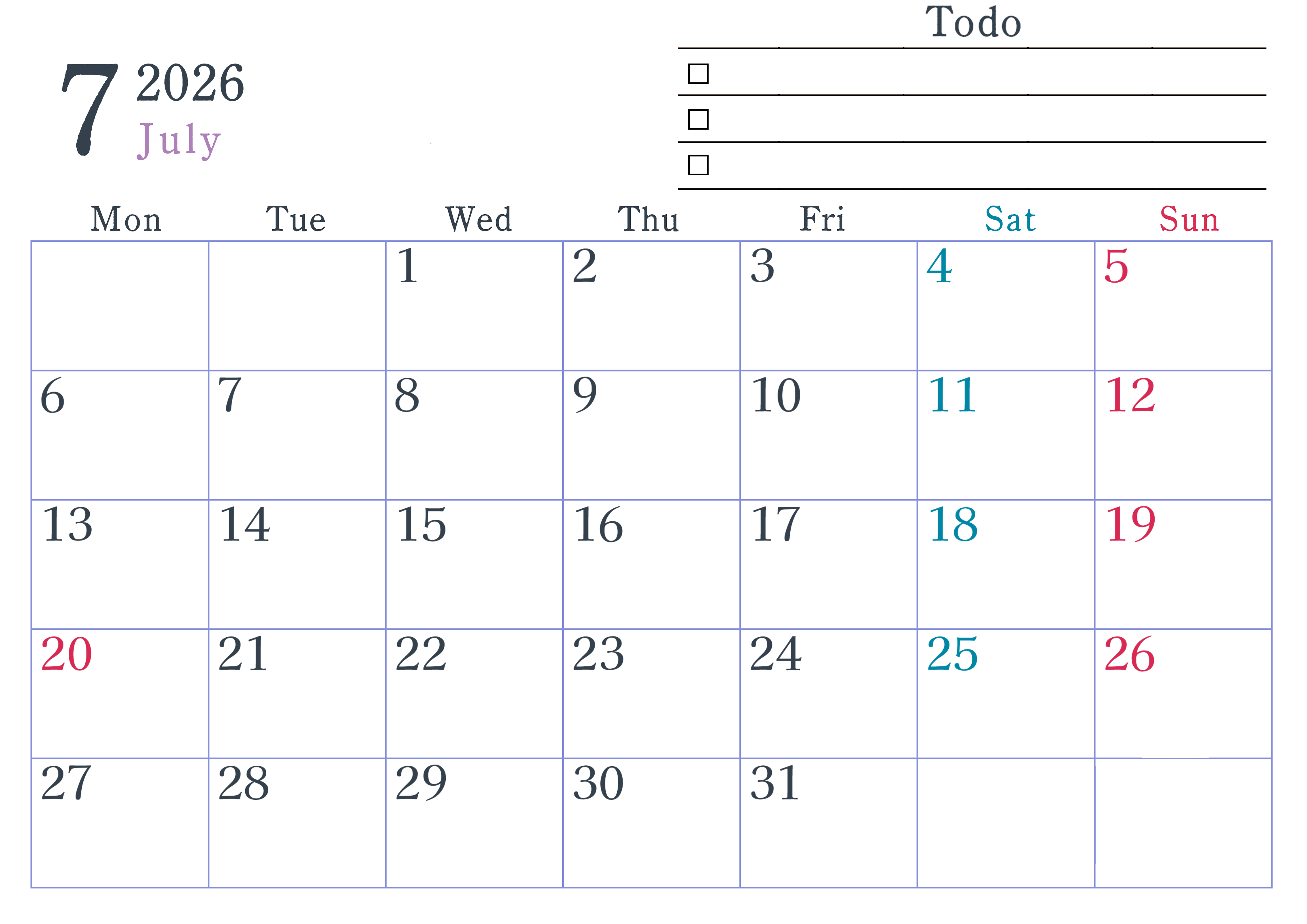 2026年・無料のカレンダーテンプレート 2026年7月カレンダーは横型月曜始まり でベージュの花がおしゃれ:無料(2026-01440701) 素材状デザイン王 2025年4月12日 2026年7月カレンダーは横型月曜始まりで使い方はシンプルなToDoリストつきです。無料ダウンロードしてA4印刷しましょう。(2026-01440701) 7月 横型のカレンダー 月曜始まり ToDoリスト カレンダーデザイン-0144