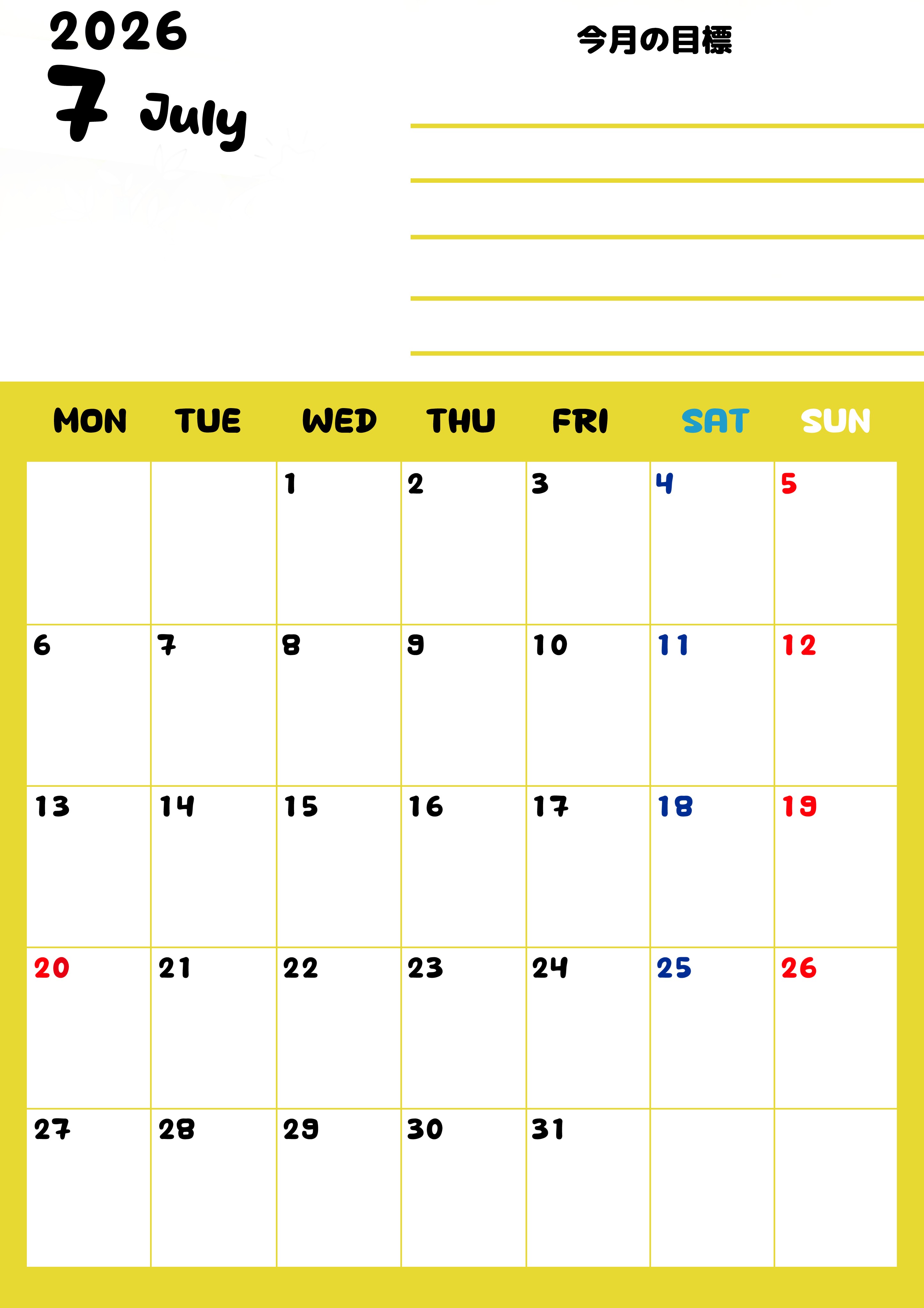 2026年・無料のカレンダーテンプレート 2026年7月カレンダーは縦型月曜始まり でベージュの花がおしゃれ:無料(2026-01520711) 素材状デザイン王 2025年4月13日 2026年7月カレンダーは縦型月曜始まりで目標管理がしやすい使いやすいです。無料ダウンロードして印刷しましょう。(2026-01520711) 7月 縦型のカレンダー 月曜始まり 目標 カレンダーデザイン-0152