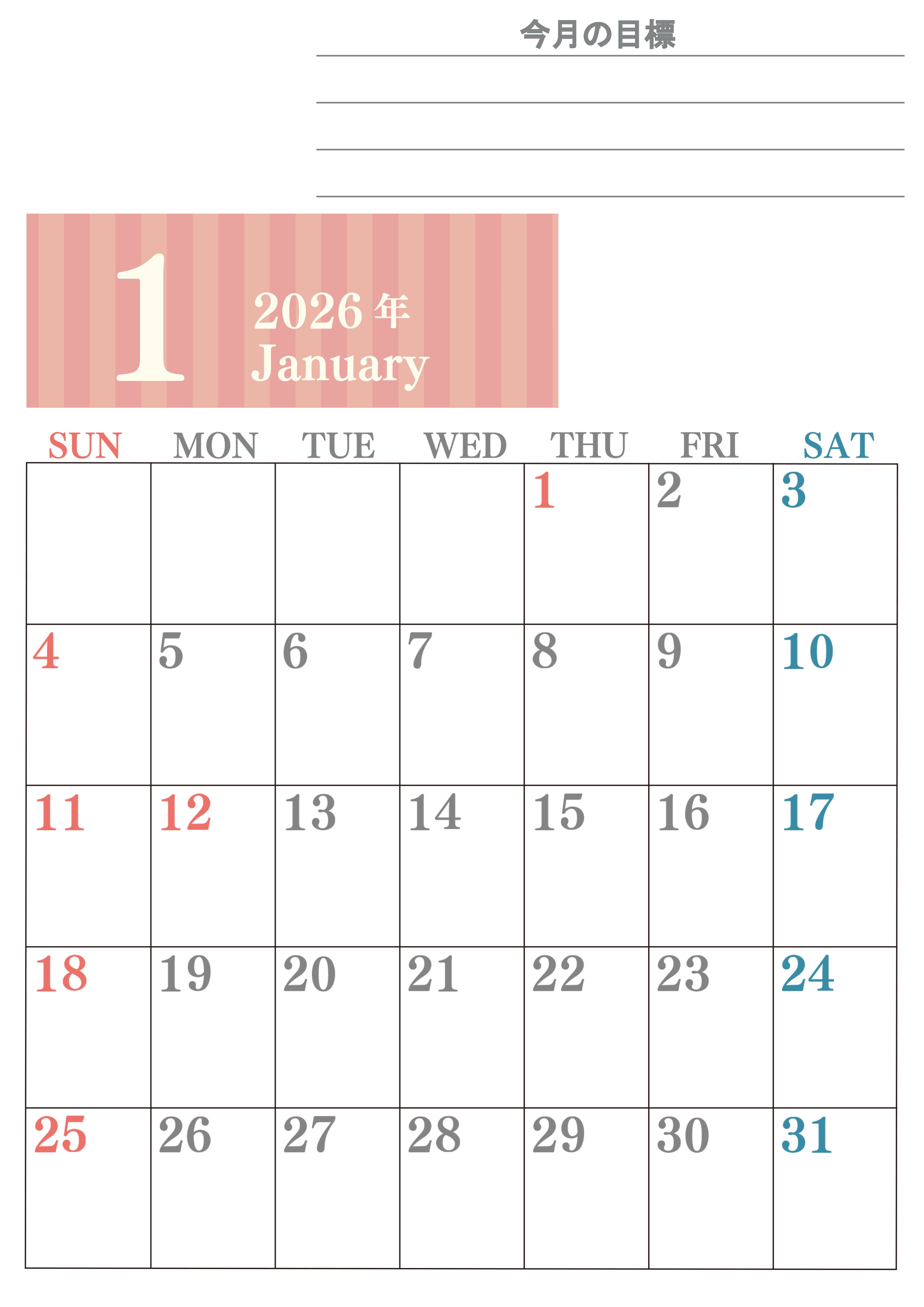 2026年・無料のカレンダーテンプレート 2026年1月カレンダーは縦型日曜始まりで季節の行事の絵文字イラストがかわいい♪ダウンロードは無料♪(2026-01540110) 素材状デザイン王 2025年4月13日 2026年1月カレンダーは縦型日曜始まりで季節の行事の絵文字イラストがかわいいです。ダウンロードは無料なので継続して使いやすいカレンダーです。(2026-01540110) 1月 縦型のカレンダー 日曜始まり 目標 カレンダーデザイン-0154