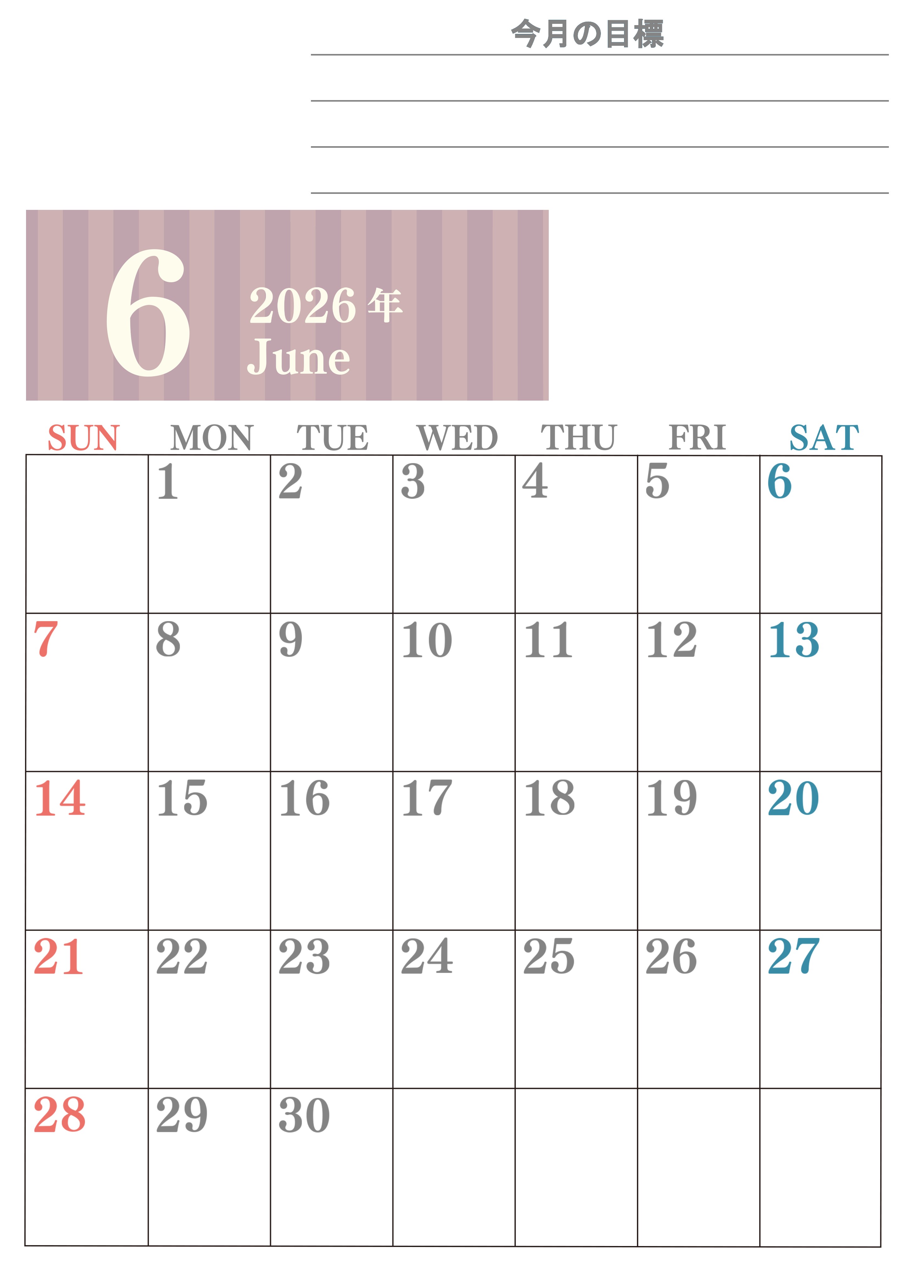 2026年6月カレンダーは縦型日曜始まりで季節の行事の絵文字イラストがかわいいです。ダウンロードは無料なので継続して使いやすいカレンダーです。(2026-01540610)