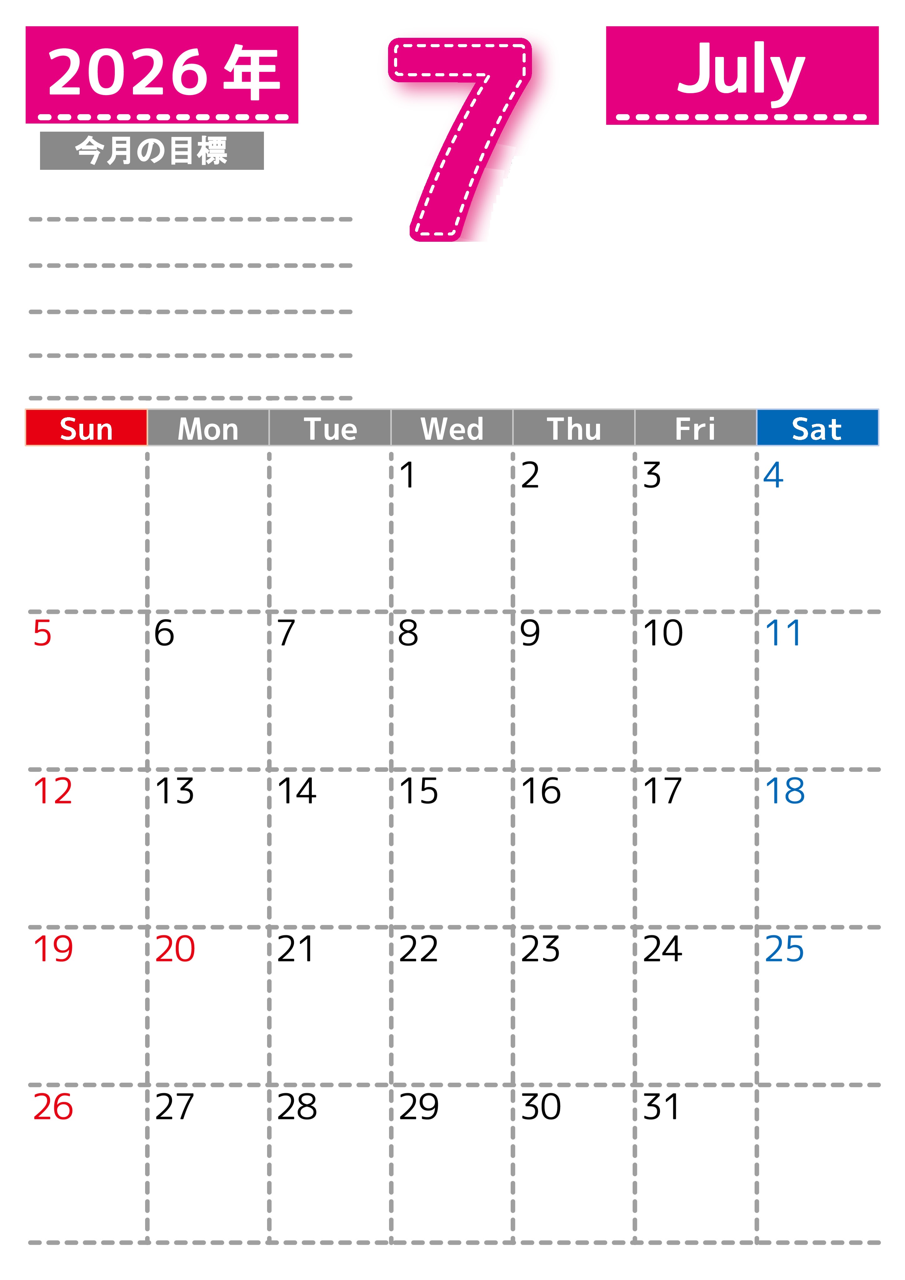 2026年・無料のカレンダーテンプレート 2026年7月カレンダーは縦型日曜始まり でベージュの花がおしゃれ:無料(2026-01590710) 素材状デザイン王 2025年4月13日 2026年7月カレンダーは縦型日曜始まりで目標の書き込み欄があります。計画を計画のままで終わらせず、目標を達成するのにお役立てください。A4サイズ・無料です。(2026-01590710) 7月 縦型のカレンダー 日曜始まり 目標 カレンダーデザイン-0159