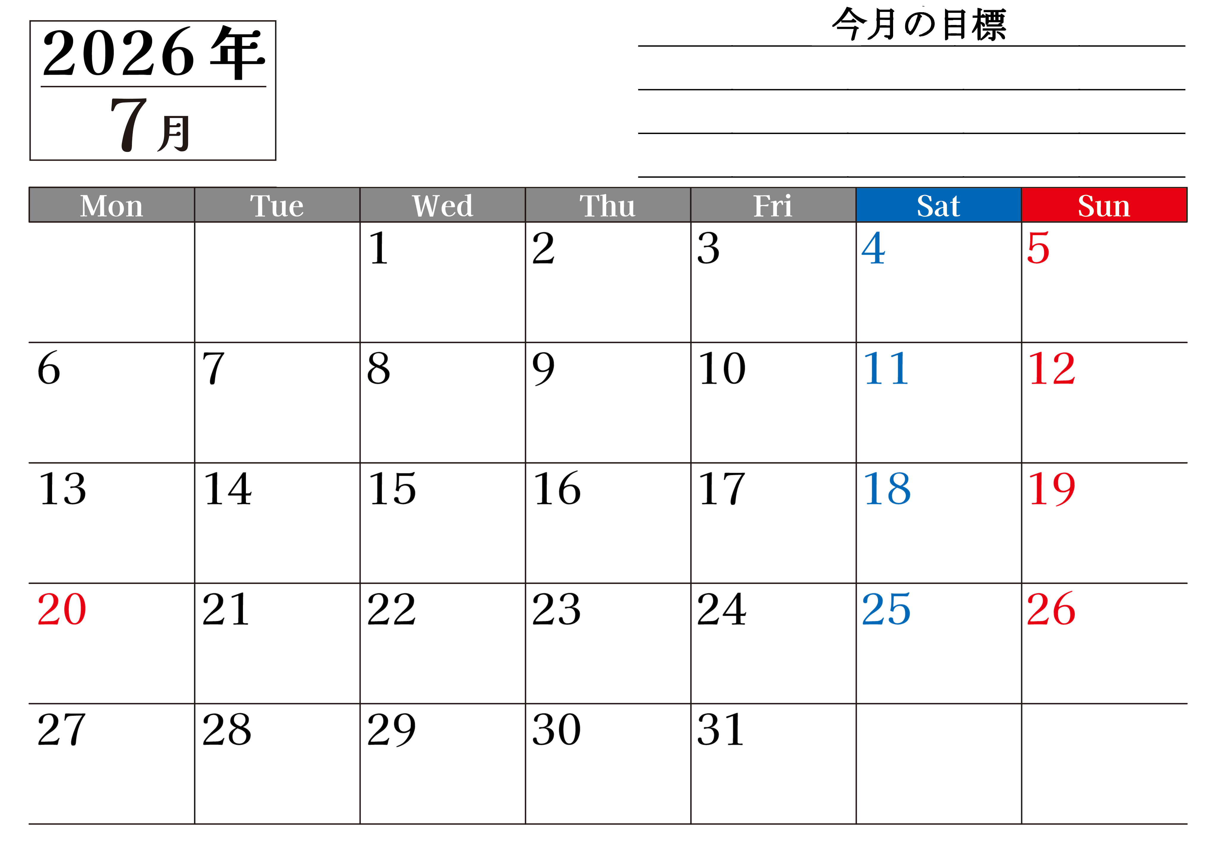 2026年・無料のカレンダーテンプレート 2026年7月カレンダーは横型月曜始まり でベージュの花がおしゃれ:無料(2026-01610701) 素材状デザイン王 2025年4月13日 2026年7月カレンダーは横型月曜始まりで目標管理もできて一石二鳥です。忙しい毎日をカレンダーで整理して夢を実現させましょう。ダウンロードは無料で簡単です。(2026-01610701) 7月 横型のカレンダー 月曜始まり 目標 カレンダーデザイン-0161