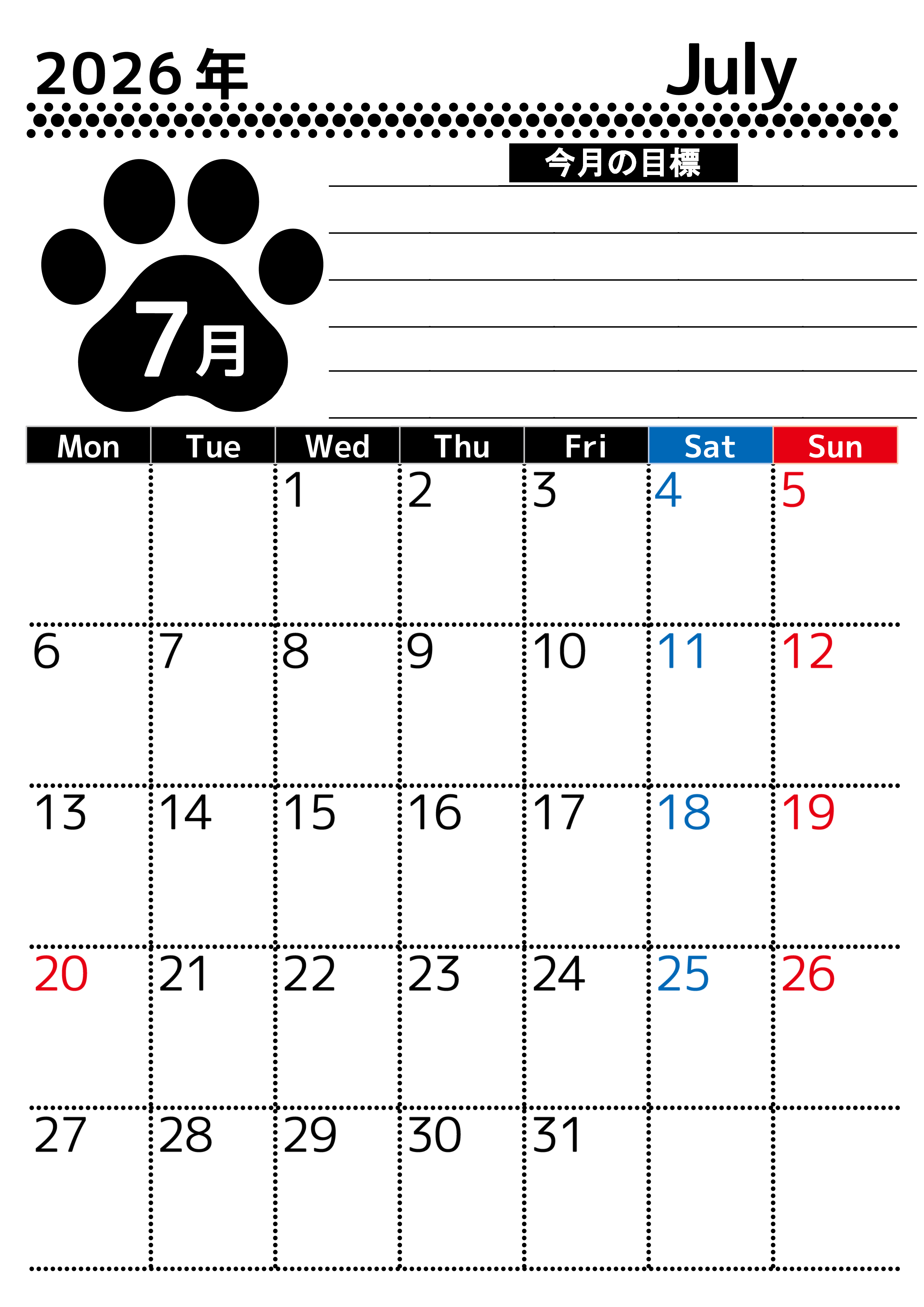 2026年・無料のカレンダーテンプレート 2026年7月カレンダーは縦型月曜始まり でベージュの花がおしゃれ:無料(2026-01620711) 素材状デザイン王 2025年4月13日 2026年7月カレンダーは縦型月曜始まりで目標設定を毎月できて使いやすいので勉強の継続に繋がります。ダウンロードは無料にて行えてA4サイズなので汎用性が高いです。(2026-01620711) 7月 縦型のカレンダー 月曜始まり 目標 カレンダーデザイン-0162