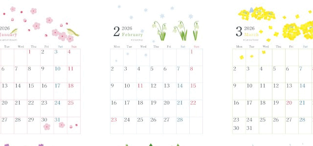 2026年用♪心ときめくやさしいかわいいイラストデザインのカレンダーでスケジュール管理をエンジョイ♪