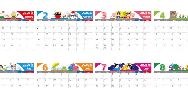 縦型・横型・日曜始まり・月曜始まり・年間1枚ものから選べる、1年を通じて前向きになれる、季節感と気持ちに寄り添うカレンダーです。毎日見るものだからこそ、「なんとなく気分が沈む」「ごちゃついて見辛い」と感じるカレンダーは避けたいですよね。やさしい色合いのフリー素材を生活に取り入れてQOLを上げていきましょう。